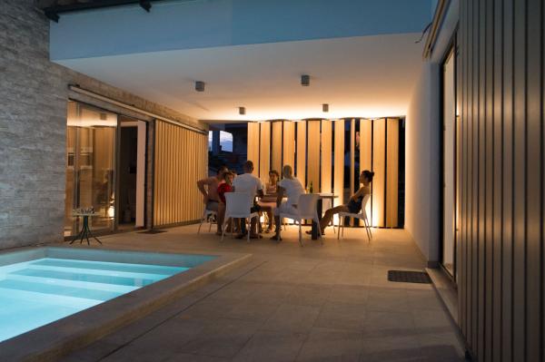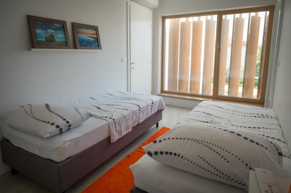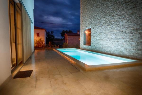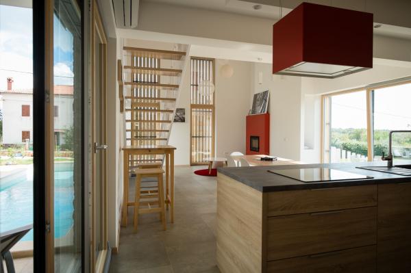 Unikátní, moderní a plně vybavená vila v centru klidné obce. Dům se skládá ze dvou propojených apartmány a terasu s bazénem. Villa 2v1 se nachází v malé malebné vesničce Fjorini nedaleko Brtonigle a Novigrad, jen 2 km od moře a krok pryč od všech atrakcí, které náš region nabízí davy podél-sklep, vinný sklep, olivový olej, středověkých měst, turistických centrech ... Dům se skládá ze dvou modulů GreenAndBlack a RedAndWhite s odděleným kuchyňským koutem, galerie, obývací pokoj s krbem. Mimo hlavní sezónu možnost pronájmu jeden modul od 110 EUR!