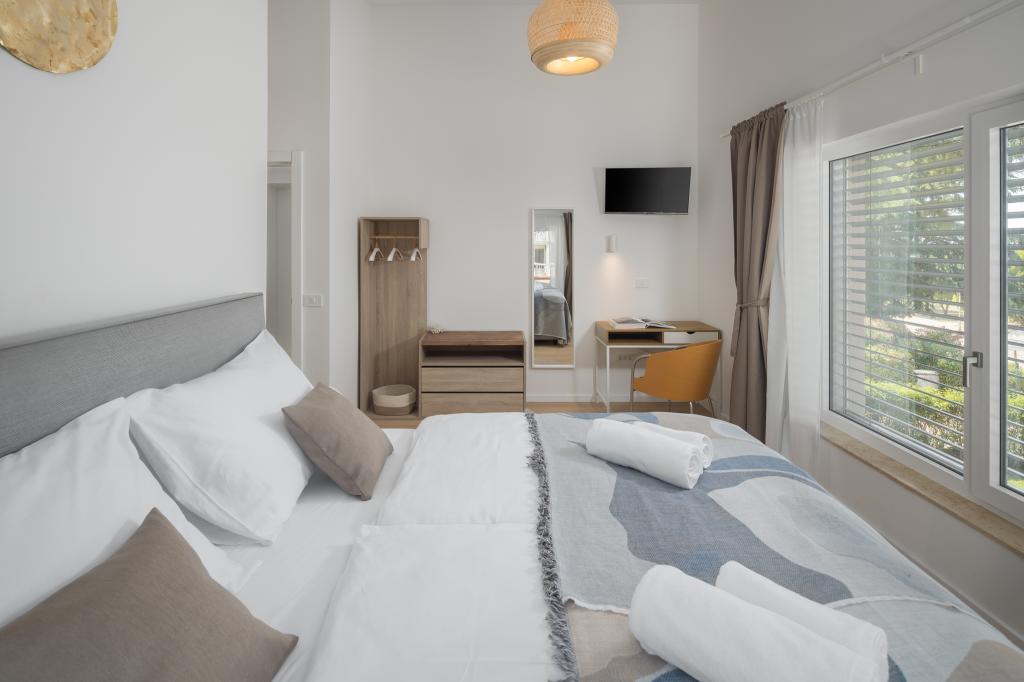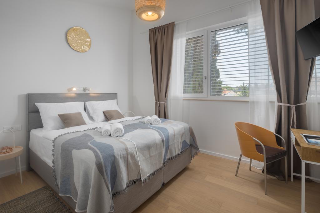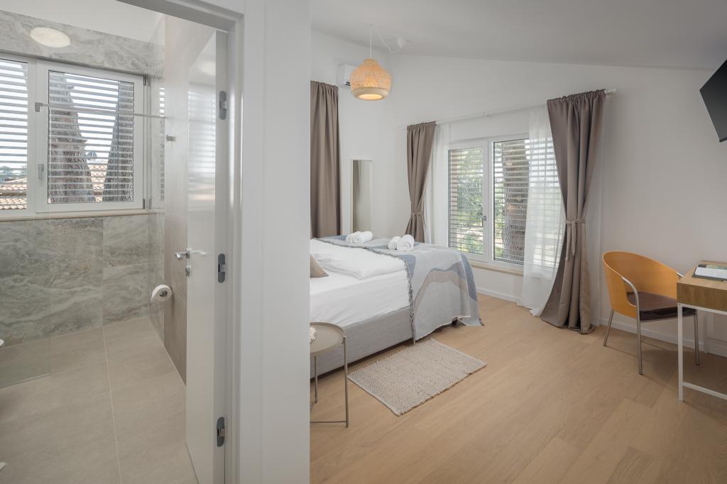 Vaše nové jedinečné místo pro vaši dovolenou v naší zcela nové designové luxusní vile Valdora. Dům se nachází v půvabném istrijském městě Novigrad, 200 metrů od pláže a 15 minut chůze od centra. S vynikající polohou, výhledem na moře, starými borovicemi ve dvoře a obrovskou terasou s vlastním vyhřívaným bazénem mohou hosty přivítat 3 pohodlné ložnice s manželskou postelí velikosti King, každá s vlastní koupelnou a klimatizací. Dům nabízí velký obývací pokoj s přirozeným světlem a plně vybavenou kuchyň s velkým stolem pro 8 osob. Lehátka jsou u bazénu, kde se můžete opalovat na terase a užívat si luxusní a odpočinkovou dovolenou. Domácí zvířata povolena na vyžádání Minimální délka pobytu 7 nocí