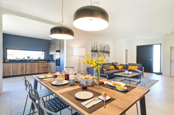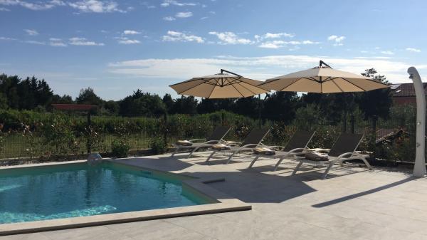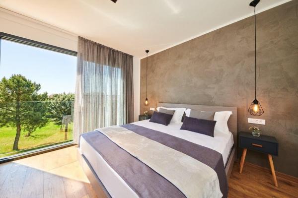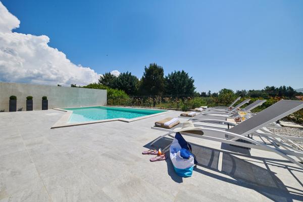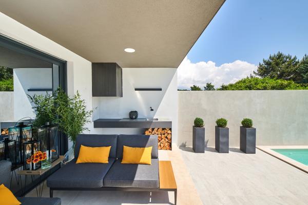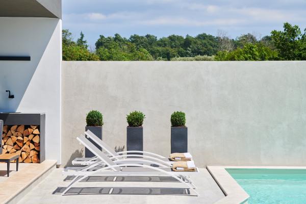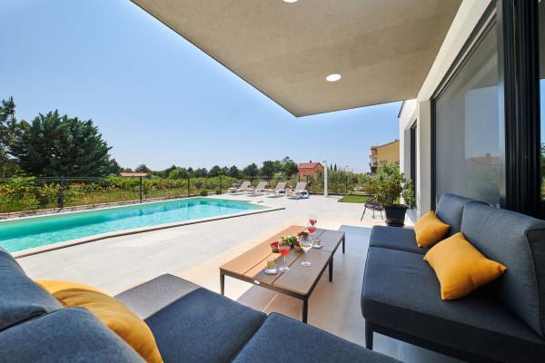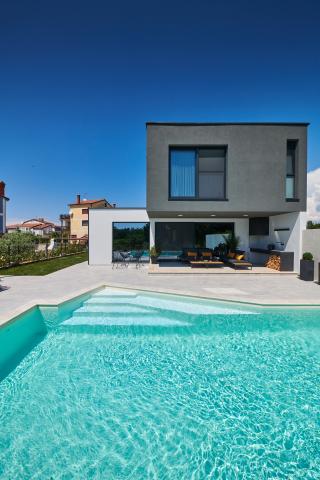 Moderní a moderně vybavená vila s bazénem se nachází v obci Stancijeta nedaleko Novigradu. Byly vybrány jednoduché přímé linie, kombinace moderního a průmyslového designu. Stlačený je příjemná kombinace teplých barev a materiálů smíchaných se šedou antracitovou barvou, která vytváří dokonalý domov pro Vaši dovolenou. Interiér vily vyzařuje eleganci, pohodlí a vynikající detaily. Při přípravě jídla v kuchyni z jakéhokoli úhlu můžete sledovat děti, které se starají o hraní bazénu nebo trávníku se spoustou hraček. V přízemí domu je ložnice s koupelnou, koupelna pro hosty, prostorný obývací pokoj a jídelní stůl a kuchyň s jídelním prostorem, ze kterého můžete vystoupit na krytou terasu u bazénu. Na podlaze jsou 3 klimatizované pokoje, z nichž každá má vlastní koupelnu pro soukromí na zahradě. Venkovní část s vlastním bazénem byla vytvořena pro dlouhé slunečné a teplé dny středomořského podnebí a vynikající umístění samotné vily.