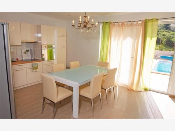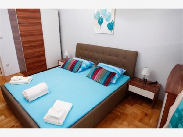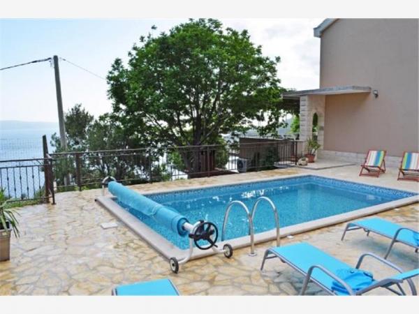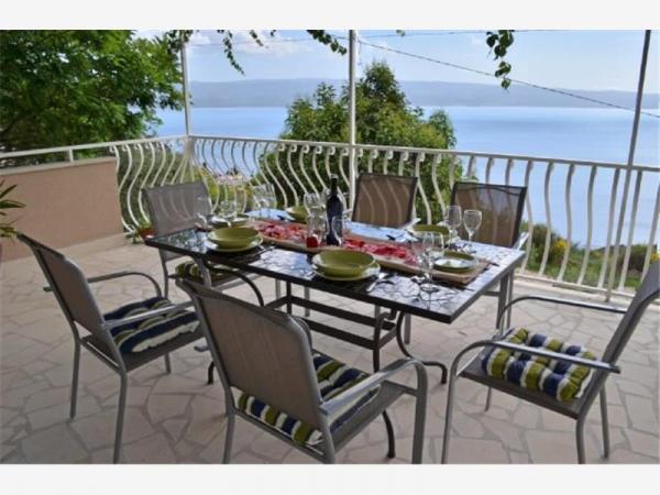 Dům je moderní a plně vybavené. Dům se nachází plavecký bazén, který naši hosté mohou občerstvit a odpočinout v horkých letních dnech. Vedle bazénu v kryté části grilu s velkým dřevěným stolem a lavicemi. Má venkovní tuš.Lijepo místo pro socializaci. Z prostřed domu je velká terasa 100 metrů čtverečních, který nabízí nádherný výhled na moře, na město, hory, ostrovy, řeka Cetina, určovací Forticu. Je to opravdu krásné. Je to jen 20 minut chůze do centra, a s autem za 5 minut. V každém případě, budete mít klidné a pohodlné místo, aby si s rodinou a přáteli, a po dobu 5 minut jste v ohnisku města, který vám poskytuje vše potřebné pro kvalitní dovolenou. Také, pokud chcete, aby se se svými přáteli u nás a relaxovat trochu nikdo nebude rušit, protože dům je sám. Jen v přední, máte kryté garáže. Dům má dvě podlaží. Dole má 100 m2 a horní patro 50. patře má balkon, ze kterého je i pohled vůbec. Vše je na dosah ruky. Objekt je vaše