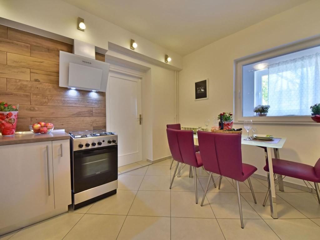 Villa Maxim - dvojdomek na slunném místě v blízkosti moře a veškeré občanské vybavenosti. Kaskádovitá poloha s přímým vstupem do zahrady se spoustou zeleně a otevřeným výhledem na moře. Dva pokoje s obývacím pokojem, kuchyní, koupelnou a balkonem. Majitel bydlí v místě. Součástí prostorná zahrada 900 m2 pro vlastní potřebu. Jeden větší pokoj se vstupem na balkon (postel 160 x 200 cm), jeden menší pokoj s velkou pohovkou (150 x 200 cm), obývací pokoj se sedací soupravou, TV a internetem zdarma. Kuchyň je plně vybavena lednicí, myčkou, plynovým sporákem, mikrovlnnou troubou a kávovarem. Každý pokoj má satelitní TV příjem a TV. Prostorná koupelna s vanou, sprchovým koutem, bidetem a pračkou. Vlastní parkoviště pro 1 auto. Video sledování přístupu. Domácí mazlíčci nejsou povoleni. Minimální délka pobytu 5 dní. Domácí večírky nejsou povoleny. Nekuřácké zařízení.