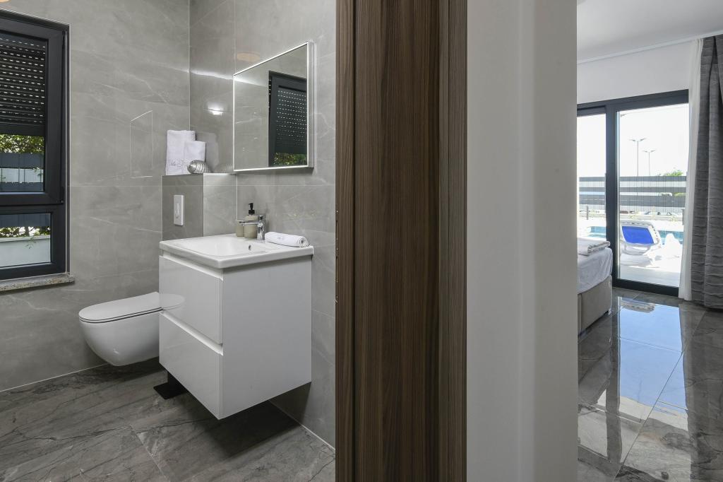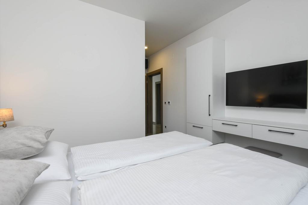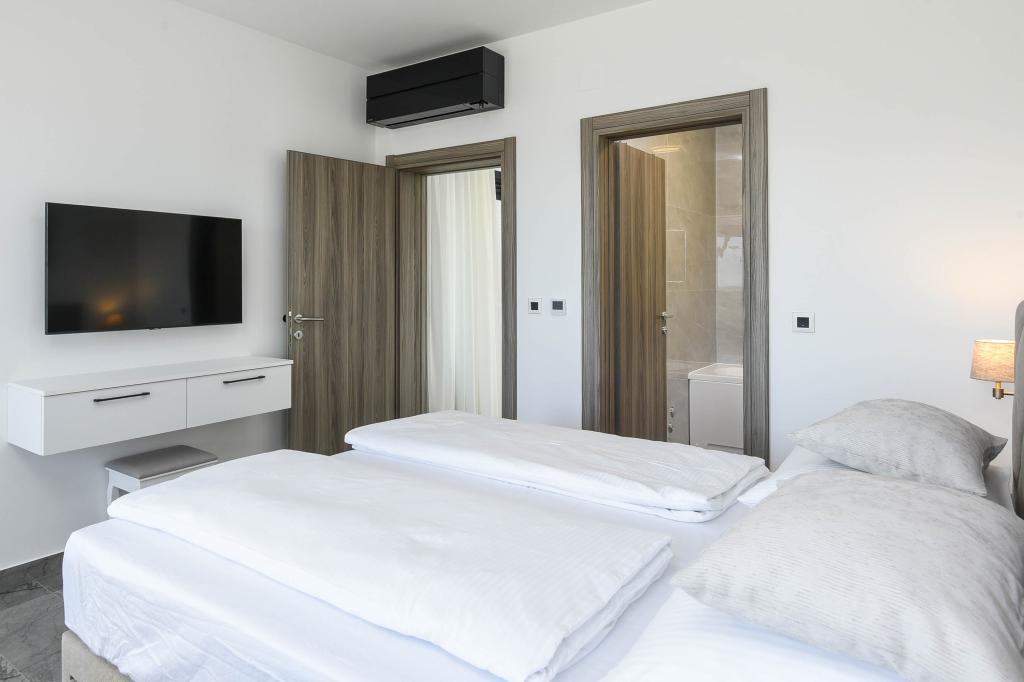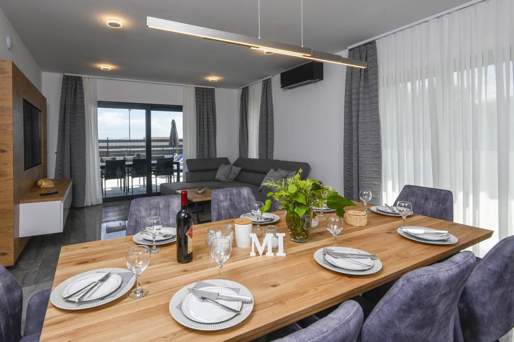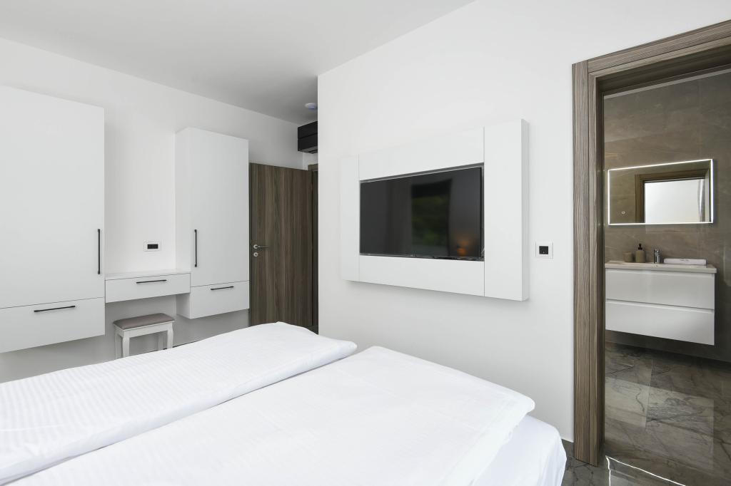 Tento dům nabízí další úroveň luxusu jako: B. v podobě většího prostoru a pohodlí, interiérového designu nebo stylu, architektury, vybavení nebo zážitků. Tento elegantní prázdninový dům s vlastním bazénem má vynikající polohu. Nachází se v blízkosti krásné pláže Trstenica s jemným pískem a oblázky. V přízemí se nachází velká kuchyň a obývací pokoj, ložnice s vlastní koupelnou a další koupelnou, prádelna a dvougaráž. Vnitřní schodiště vede do 1. patra, kde jsou další tři ložnice s koupelnami a pracovna (kancelář). Každá ložnice vede na krásný balkon s krásným výhledem na moře. Venku se můžete ochladit v bazénu, relaxovat ve vlastní vířivce a sauně, zatímco se děti budou bavit na hřišti. V suterénu je fitness centrum a společenská místnost. Orebić je malé místo, ale dostatečně velké, aby vám nabídlo vše, co na dovolené potřebujete, od restaurací po obchody. Můžete se také vydat na jednodenní výlety do Dubrovníku a na ostrov Korčula.