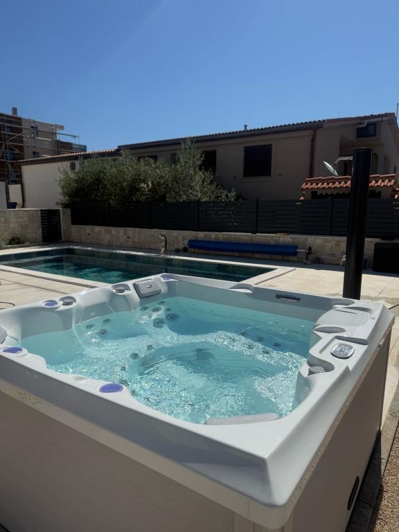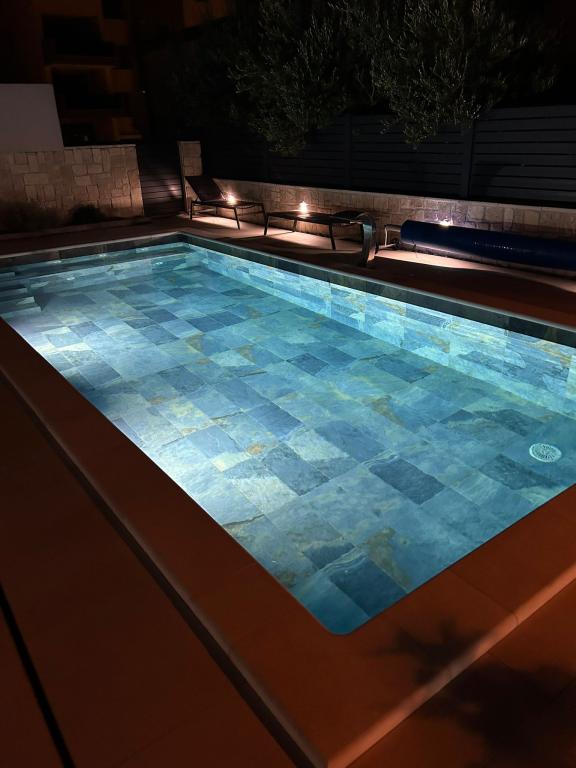 Luxusní vila Pam se nachází v Mandre, pouhých 400 metrů od první oblázkové pláže. Má klimatizované ubytování v každém pokoji a soukromý vyhřívaný bazén (8x3,5) s kapacitou max. 8 lidí. Tato vila o rozloze 230 m2 je nově postavená a nabízí přístup na balkon, bezplatné soukromé parkoviště, bezplatné Wi-Fi a dvůr o rozloze 300 m2. Prostorná vila má 4 ložnice, 4 koupelny, TV s plochou obrazovkou a jídelnu, plně vybavenou kuchyň a letní terasu s výhledem na bazén. Nabízíme také venkovní gril pro nezapomenutelná jídla a posezení na čerstvém vzduchu. Tato luxusní vila je ideální pro odpočinkovou dovolenou s rodinou a přáteli.