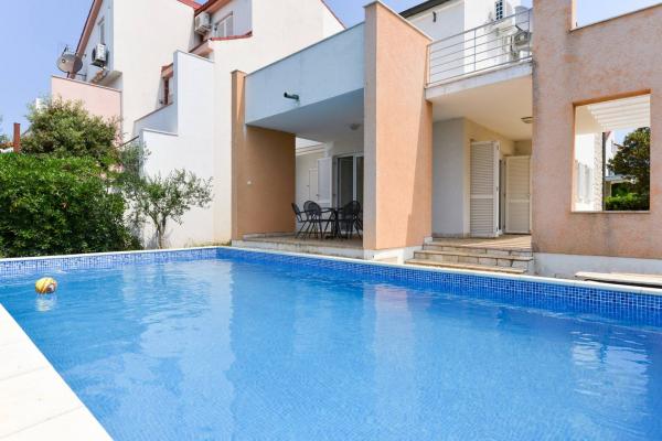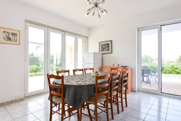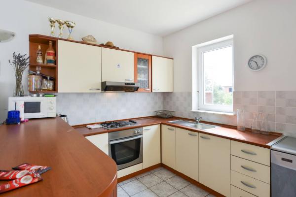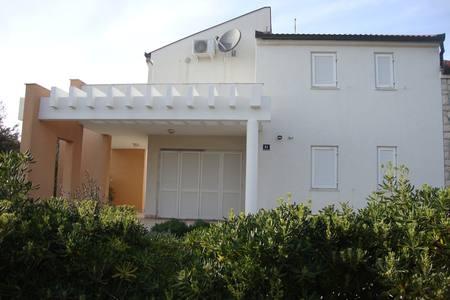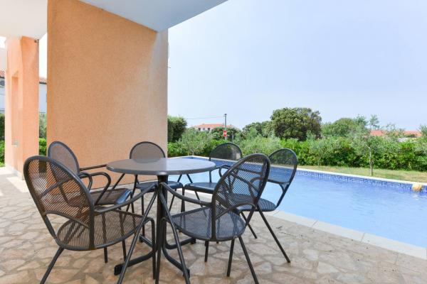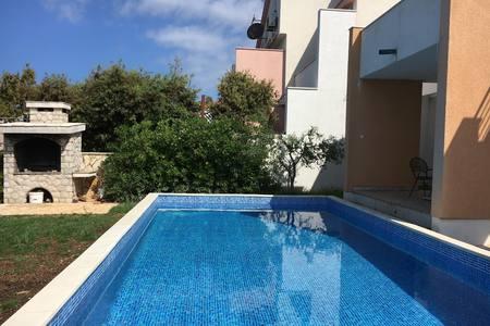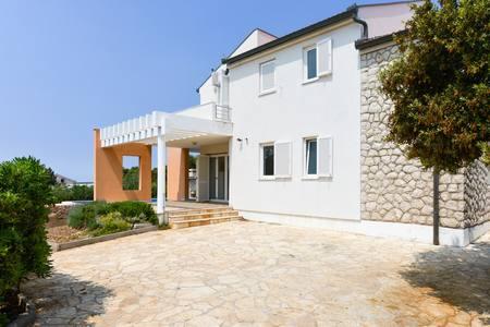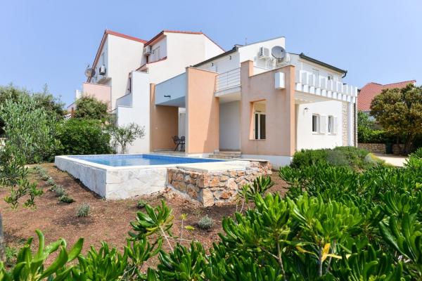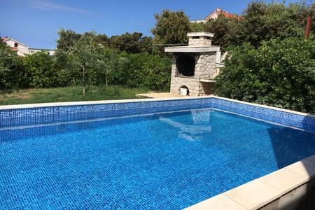 Krásný dům s bazénem na ostrově Pag (místo Mandre), 200 metrů od moře. Nachází se v klidné čtvrti, obklopené dalšími rodinnými domy. Objekt má bazén o rozloze 8x4 m, nádherně upravený dvůr, terasu, opalovací terasu, gril a parkoviště. V přízemí budovy je prostorný obývací pokoj s kuchyní, koupelnou, garáží a komorou. V přízemí jsou čtyři pokoje, z toho tři s manželskými postelemi a jedna se dvěma menšími postelemi. V přízemí je také samostatná koupelna a velká terasa. Zařízení může ubytovat až 8 dospělých v horním patře a další dvě v přízemí (čalouněná gauč). Dům je ideální pro klidnou rodinnou dovolenou a je plně a moderně vybaven pro příjemný pobyt.