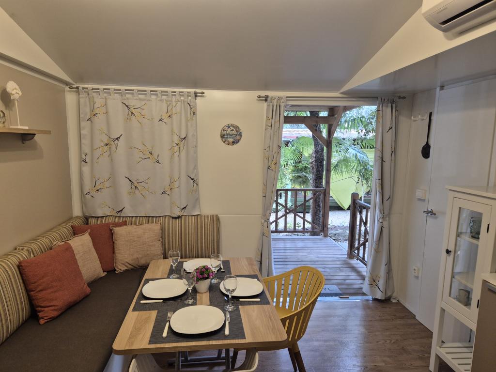 Komfortní ubytování: Mobilní dům Glamour Pakoštane v Pakoštane nabízí dvě ložnice a dvě koupelny s prostorným obývacím pokojem. Součástí nemovitosti je plně vybavená kuchyň, klimatizace a bezplatné Wi-Fi. Volnočasové vybavení: Hosté si mohou užít terasu, bar a dětský bazén. K dalšímu vybavení patří jídelní kout, venkovní nábytek a bezplatné soukromé parkoviště na místě. Vynikající poloha: Kemp se nachází 27 km od letiště Zadar, jen pár kroků od pláže Punta. Nedaleko se nachází přístav Kornati a Muzeum kulturního dědictví Biogradu, obě vzdálené 8 km. V okolí se nabízí možnost plachtění.