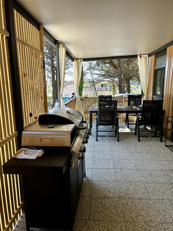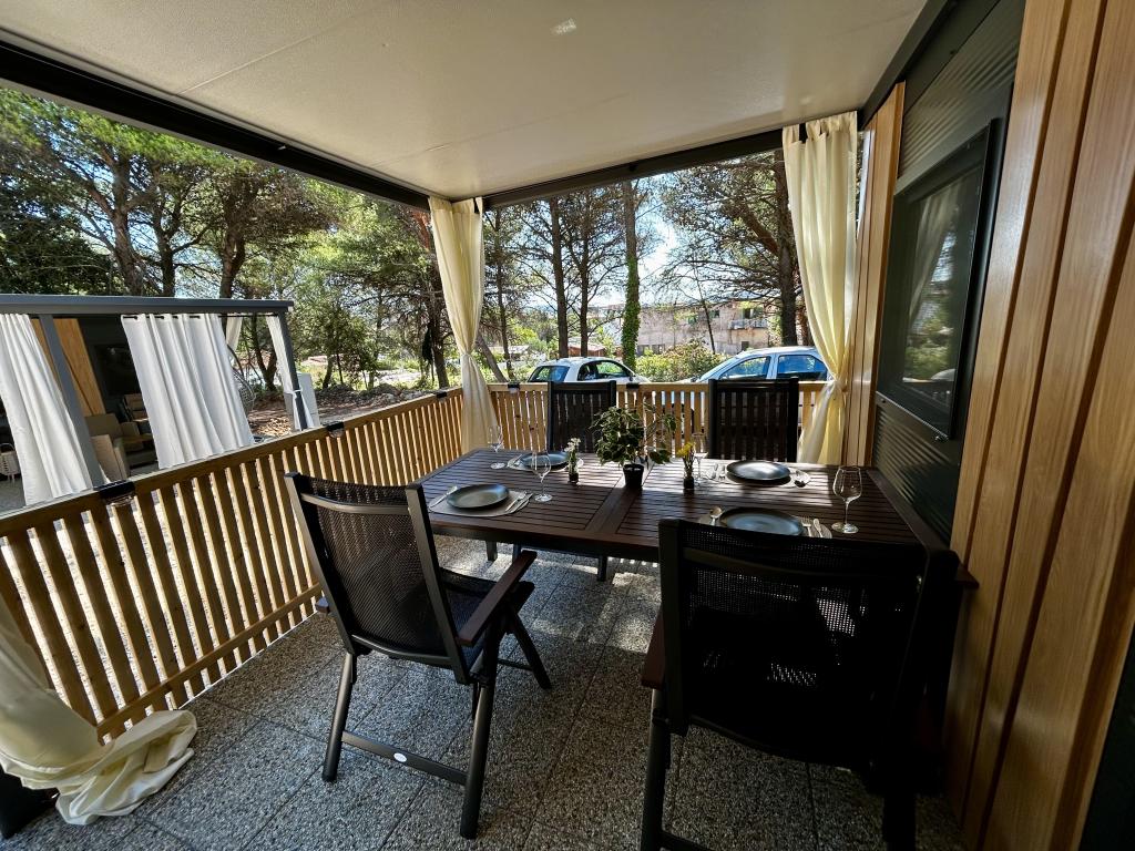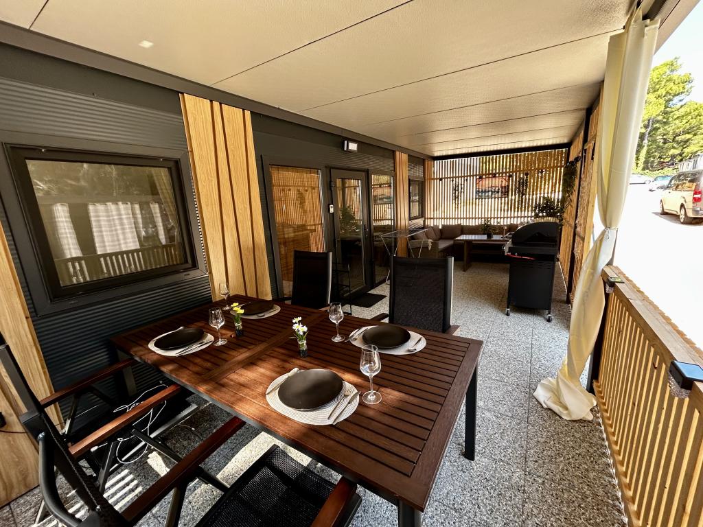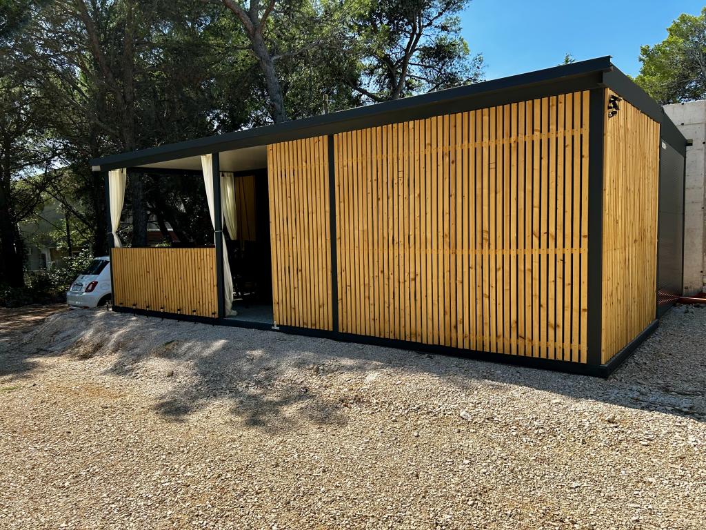 Pronajímáme plně vybavený mobilní dům ideální pro dovolenou! Vybavení: • Plocha: 25 m² vnitřního prostoru + 25 m² terasy • Ložnice: 2 s manželskými postelemi, rozkládací pohovkou • Kuchyň: Plně vybavená Další vybavení: • Terasa s plynovým grilem a pecí na pizzu, stůl pro 6-10 osob • Pláž: 4 minuty chůze od oblázkové a písečné pláže • Centrum: 7 minut do centra Parkování: 2 parkovací místa