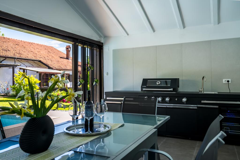 Plně vybavená vila ve vnitrozemí Istrie nabízí klidnou a příjemnou dovolenou. Vzdálenost od krásných pláží cca. 30 km. Disponuje vyhřívaným bazénem 10×5 m, velkou zahradou s venkovním grilem, herními potřebami a 3 parkovacími místy. Interiér je moderně vybaven veškerým potřebným obsahem. Možnost aktivní dovolené na upravených cyklostezkách v okolí, vychutnávání si kouzel moře nebo návštěvy četných restaurací a venkovské turistiky s tradičními pokrmy.