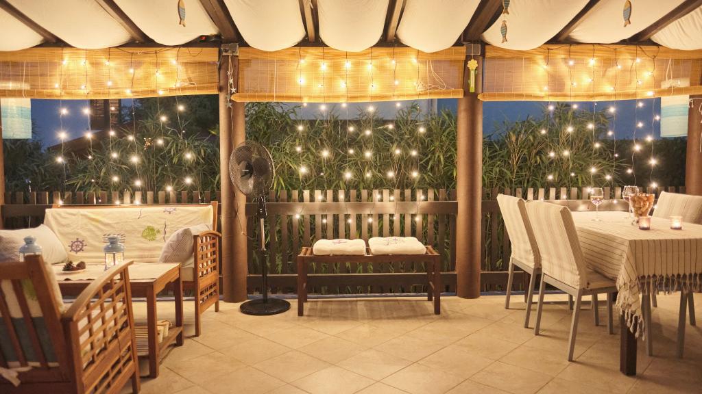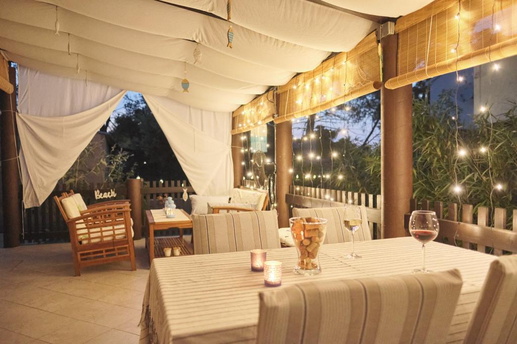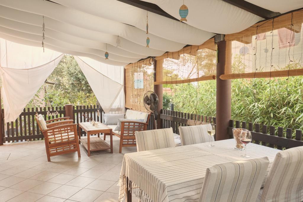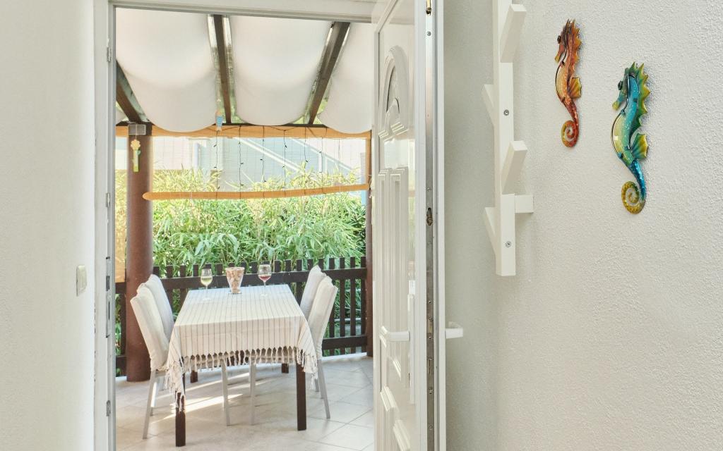 K dispozici máte parkovací místo ve dvoře, skrytou boční terasu s grilem a úložnou místností s plážovými lehátky a dalším vybavením a zahradu v zadní části domu. Před terasou je solární zahradní sprcha. V letních měsících (od poloviny června do poloviny/konce srpna) se v domě může ubytovat až 6 osob (ve 3 ložnicích), zatímco mimo hlavní sezónu je počet hostů omezen na 4 osoby a pouze 2 ložnice. Cena zahrnuje veškeré turistické výdaje, neomezený přístup k WiFi internetu, parkování, elektřinu a další služby a k dispozici je také ložní prádlo a ručníky.