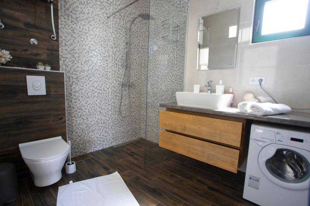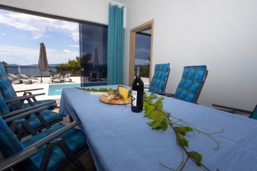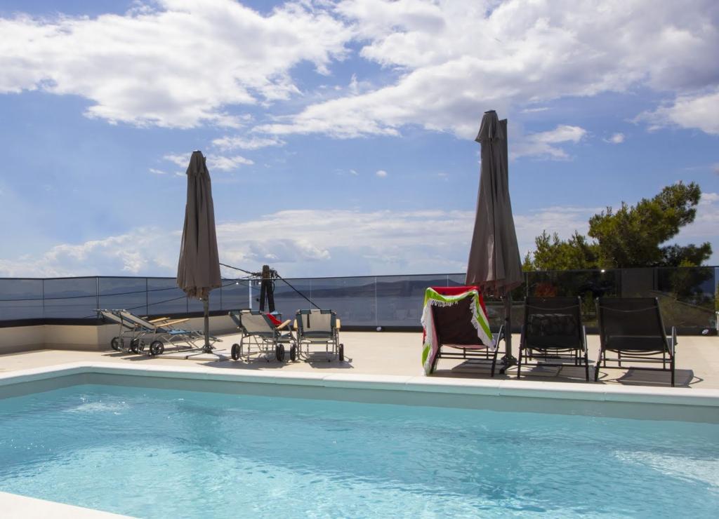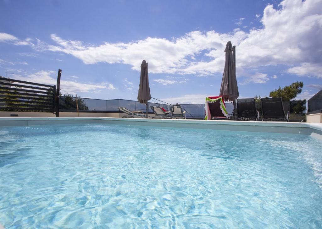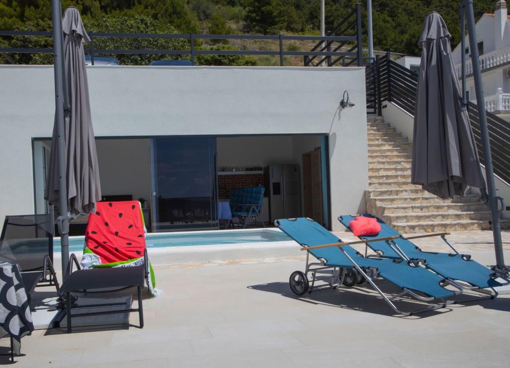 Hosté mají k dispozici 3 ložnice s oddělenými lůžky, každá s koupelnou.Ve společném prostoru, tj. obývacím pokoji, je navíc rozkládací pohovka pro 2 osoby. Kuchyně má všechny potřebné spotřebiče. terasa s bazénem a veškerým vybavením postele. , pergola, sprcha, gril, stůl a židle.Dům má 3 parkovací místa.Celkem 8 osob.