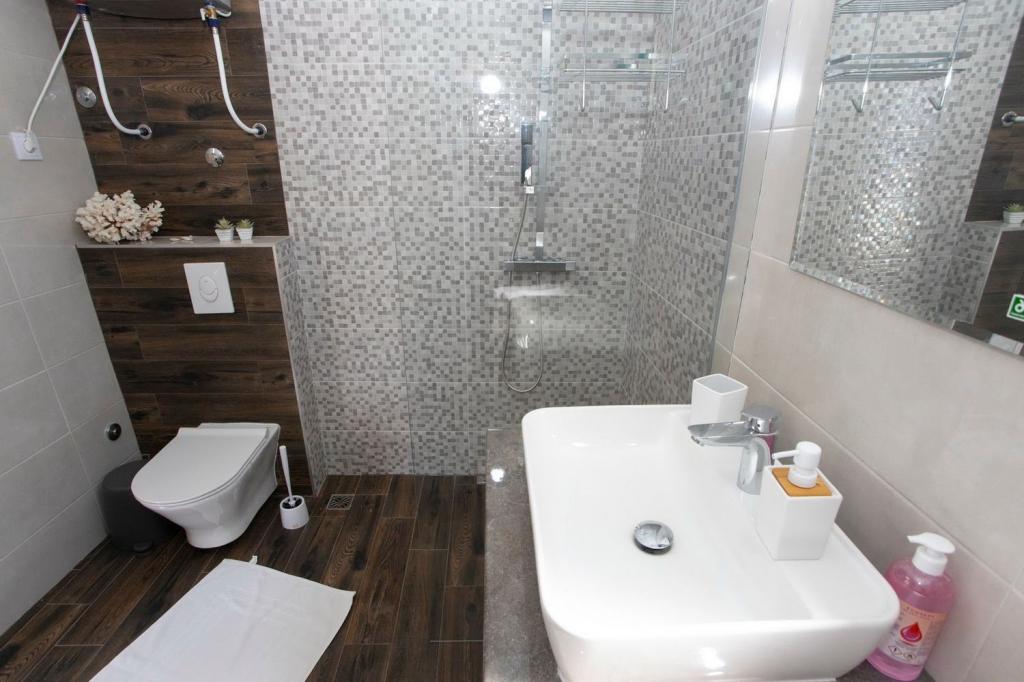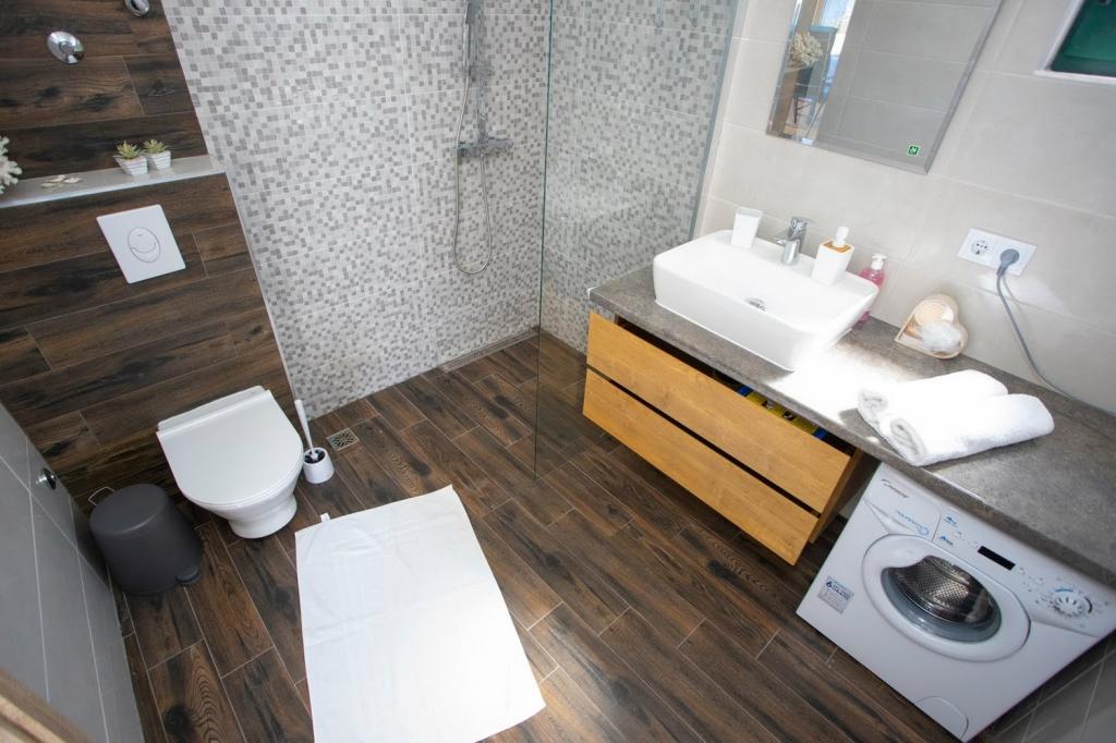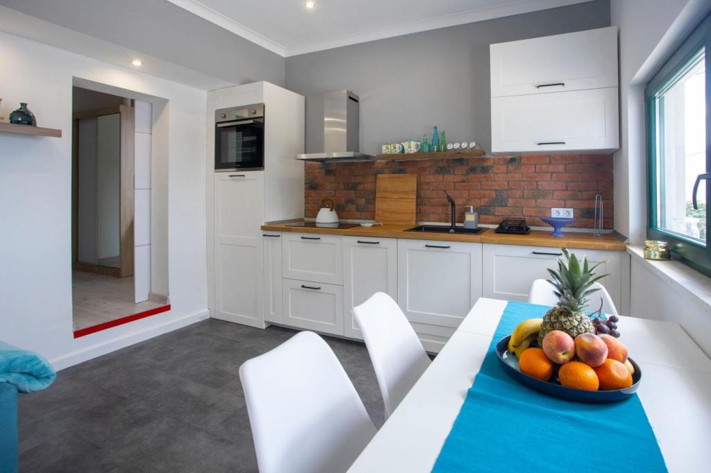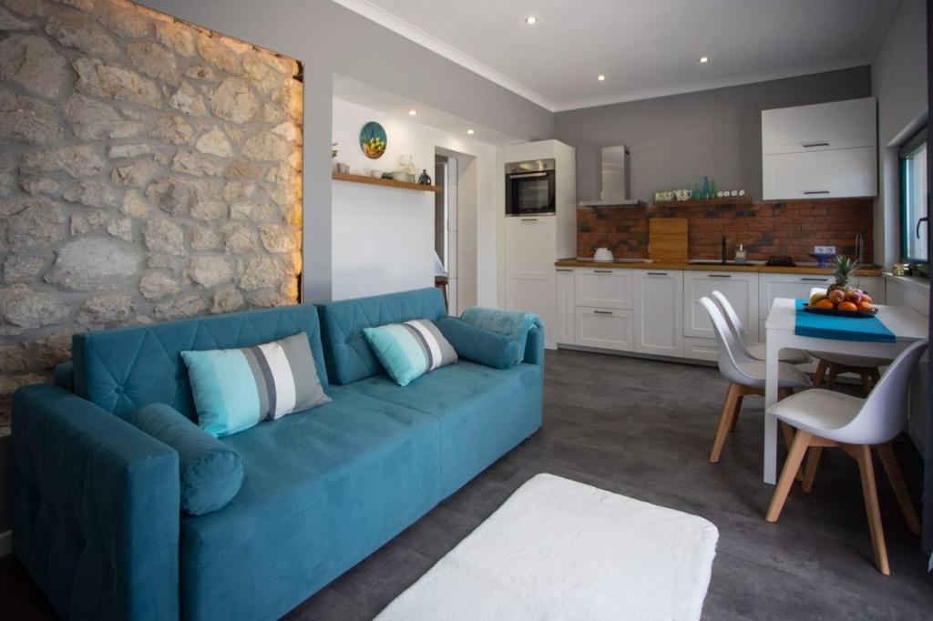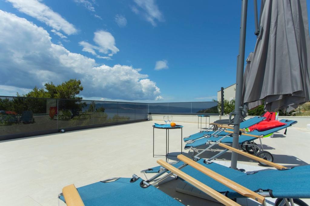Hosté mají k dispozici 3 ložnice s oddělenými lůžky, každá s koupelnou.Ve společném prostoru, tj. obývacím pokoji, je navíc rozkládací pohovka pro 2 osoby. Kuchyně má všechny potřebné spotřebiče. terasa s bazénem a veškerým vybavením postele. , pergola, sprcha, gril, stůl a židle.Dům má 3 parkovací místa.Celkem 8 osob.