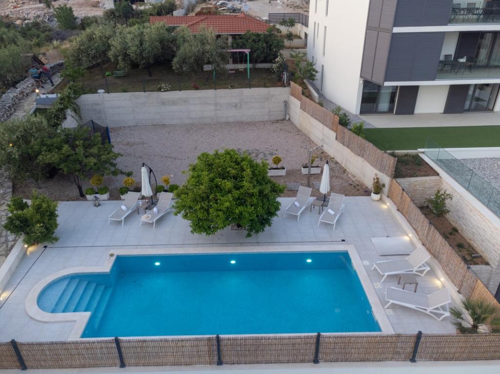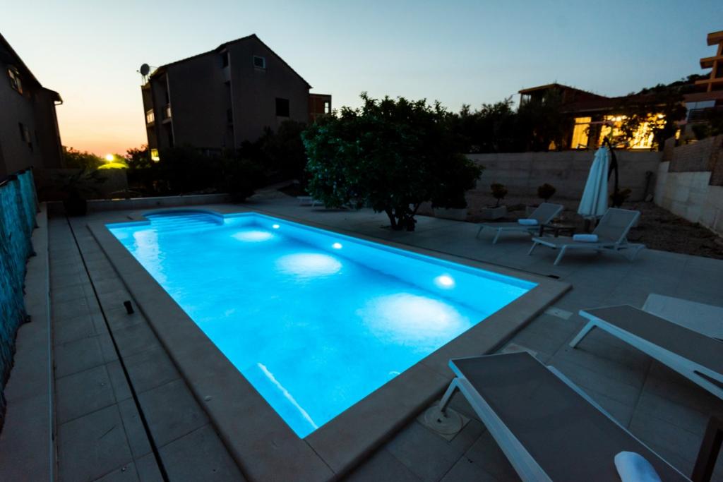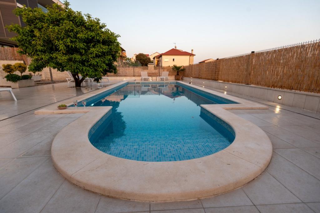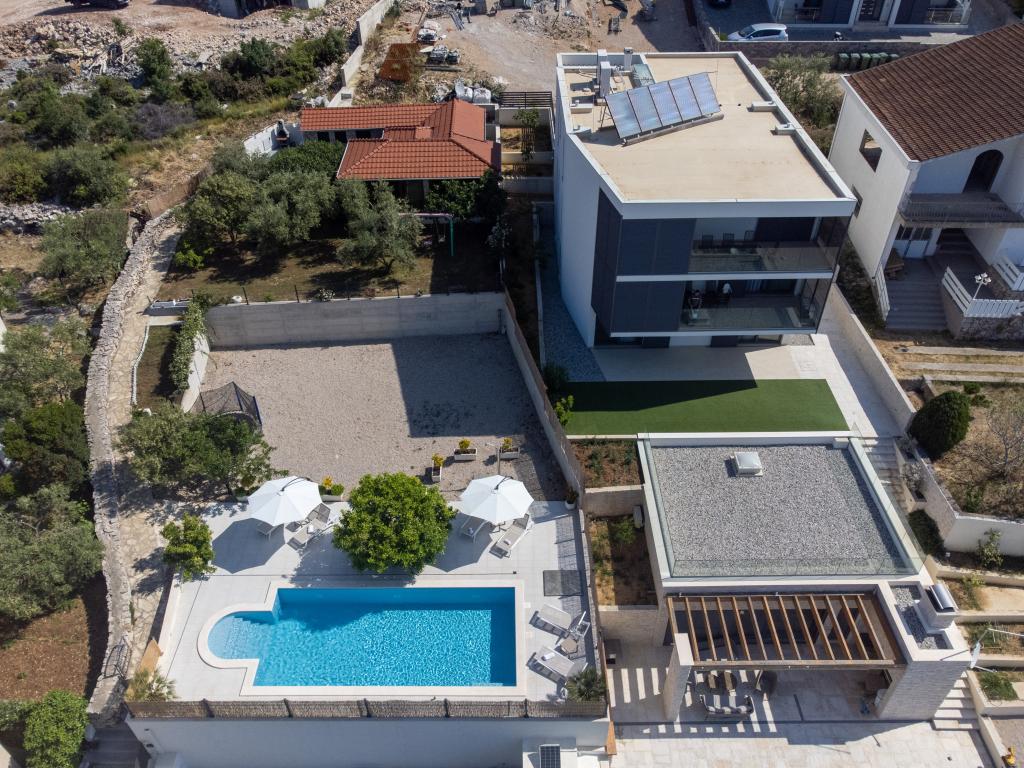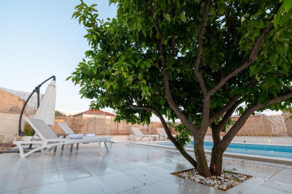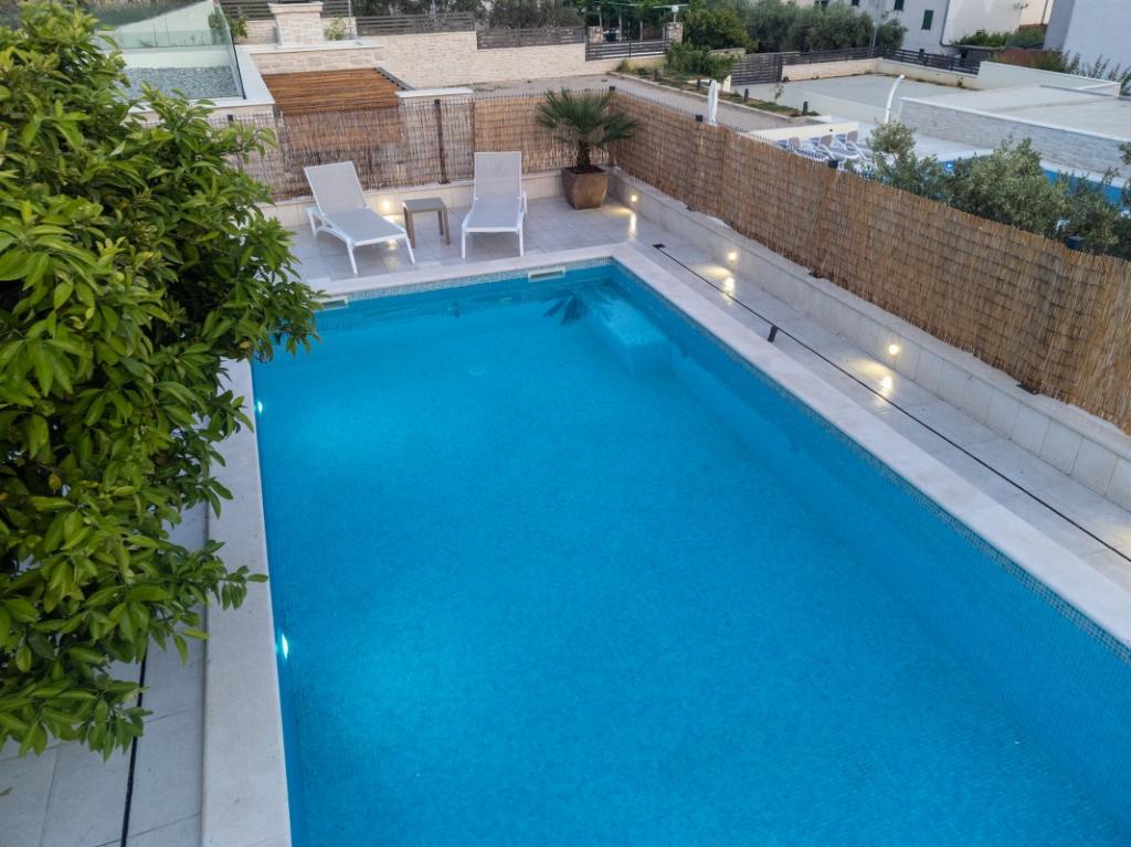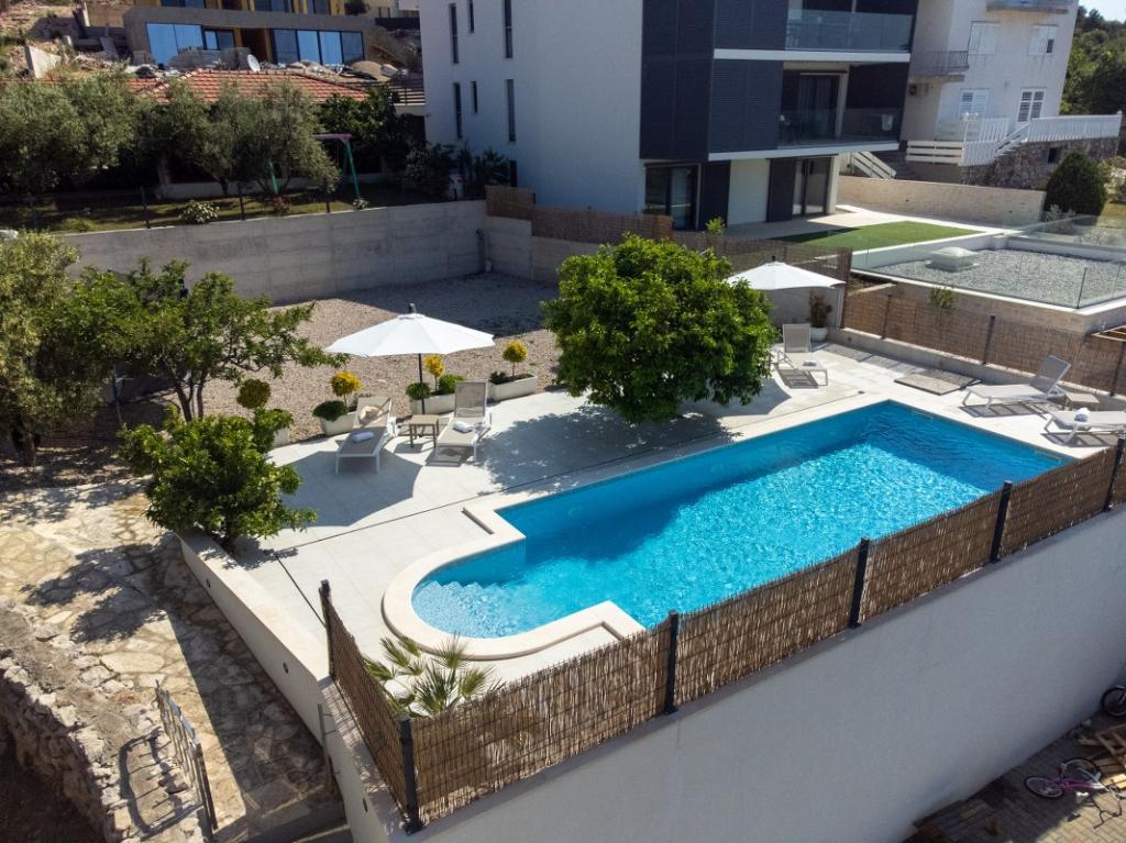 Sun gardens je okouzlující dům k pronájmu, který se nachází na předměstí Šibeniku v Podsolarsku, jen 1 km od oblíbeného parku Amadria. Tento dům ukrytý mezi olivovníky má 2 ložnice, koupelnu, velkou zahradu a hřiště pro děti a velkou jídelnu a kuchyň, umístěné v prosklené části, jsou ideální pro večerní posezení. Největším plusem je velký soukromý bazén a prostor na opalování pro chvíle odpočinku.