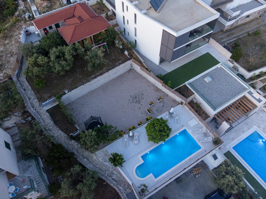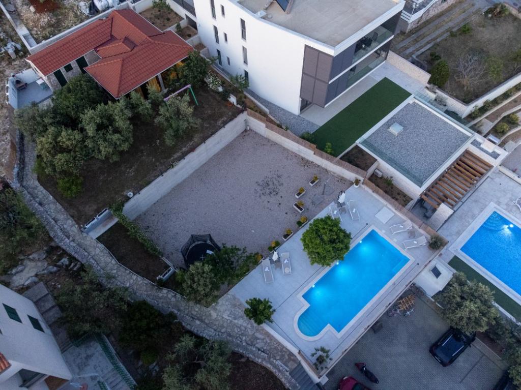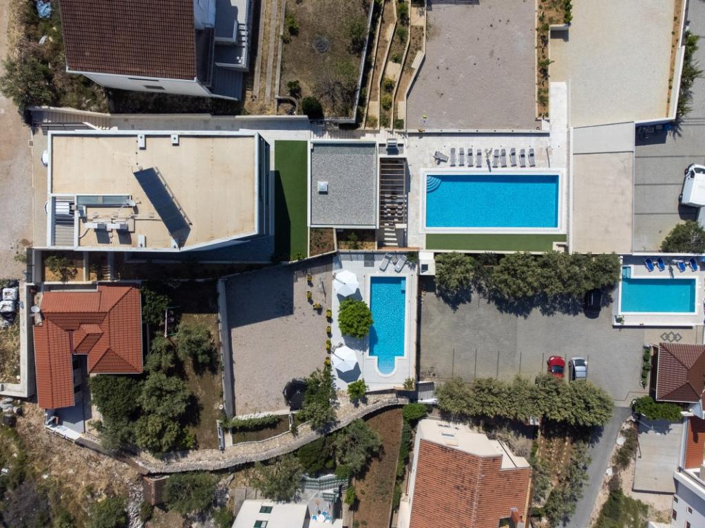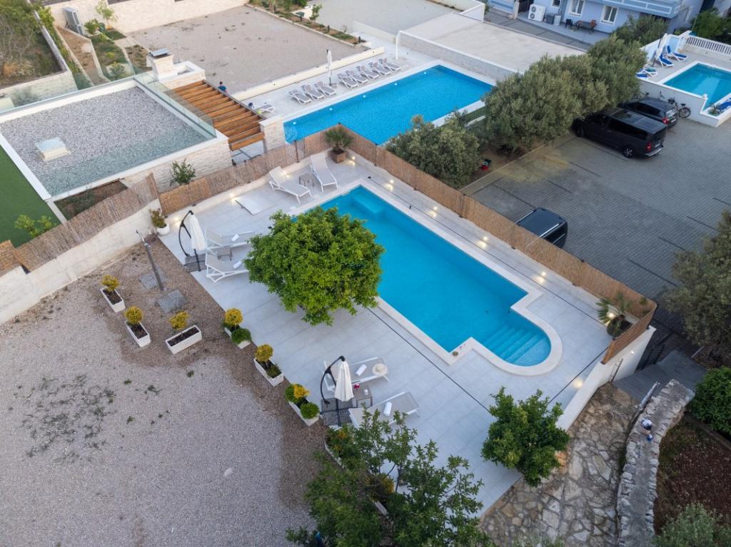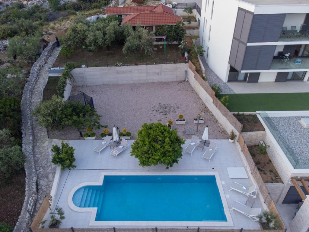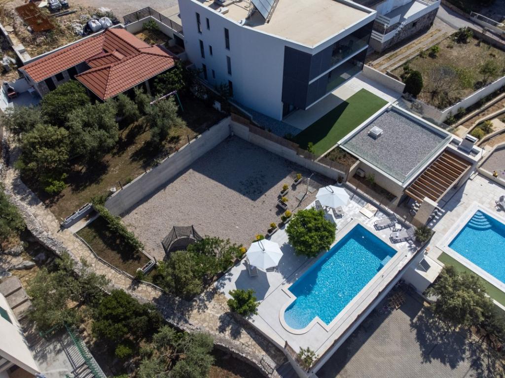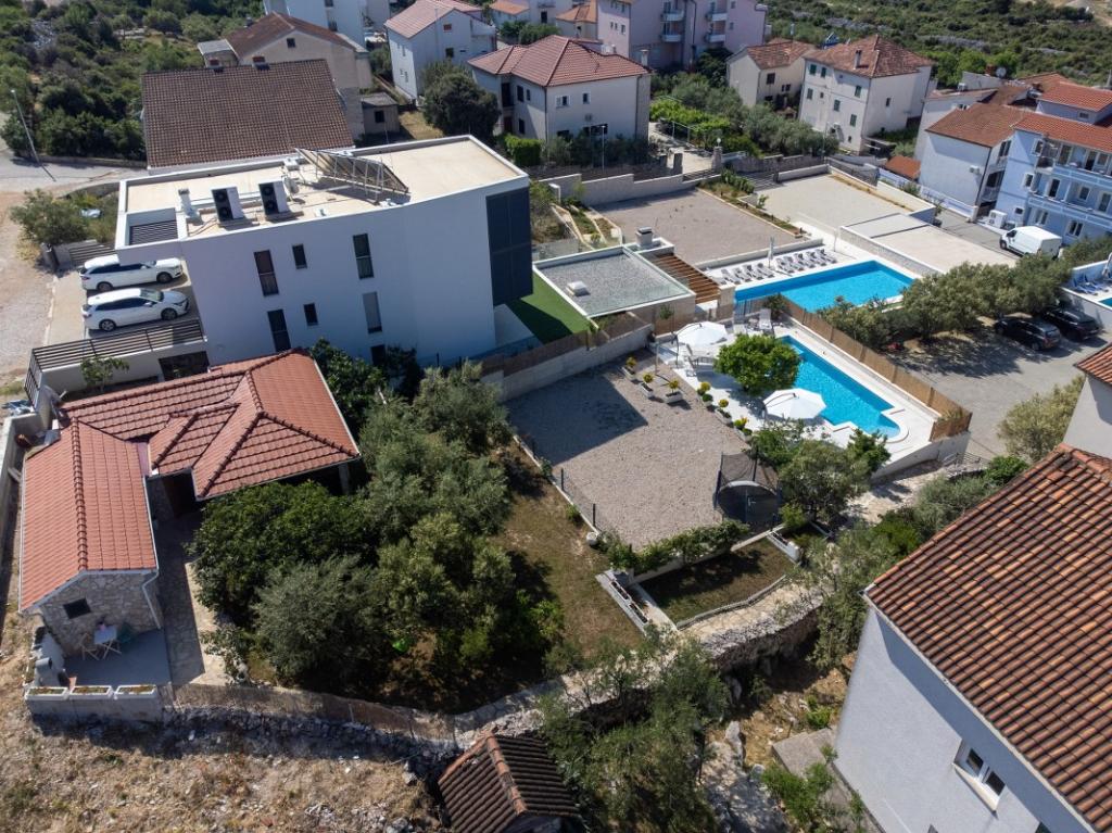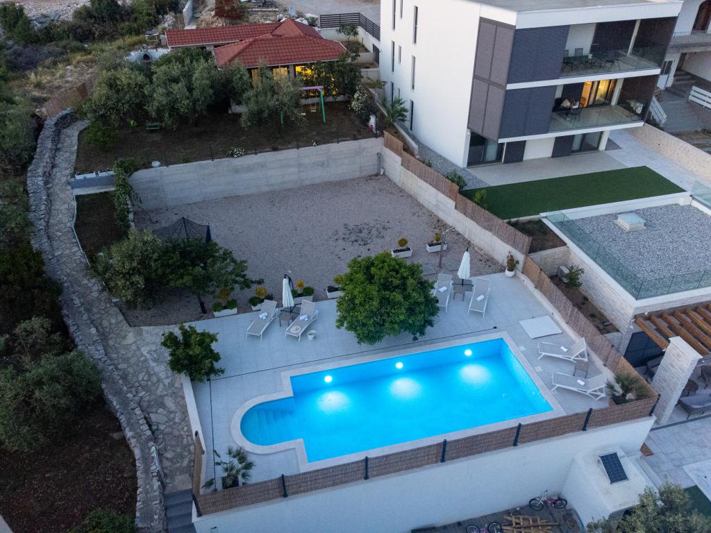 Sun gardens je okouzlující dům k pronájmu, který se nachází na předměstí Šibeniku v Podsolarsku, jen 1 km od oblíbeného parku Amadria. Tento dům ukrytý mezi olivovníky má 2 ložnice, koupelnu, velkou zahradu a hřiště pro děti a velkou jídelnu a kuchyň, umístěné v prosklené části, jsou ideální pro večerní posezení. Největším plusem je velký soukromý bazén a prostor na opalování pro chvíle odpočinku.