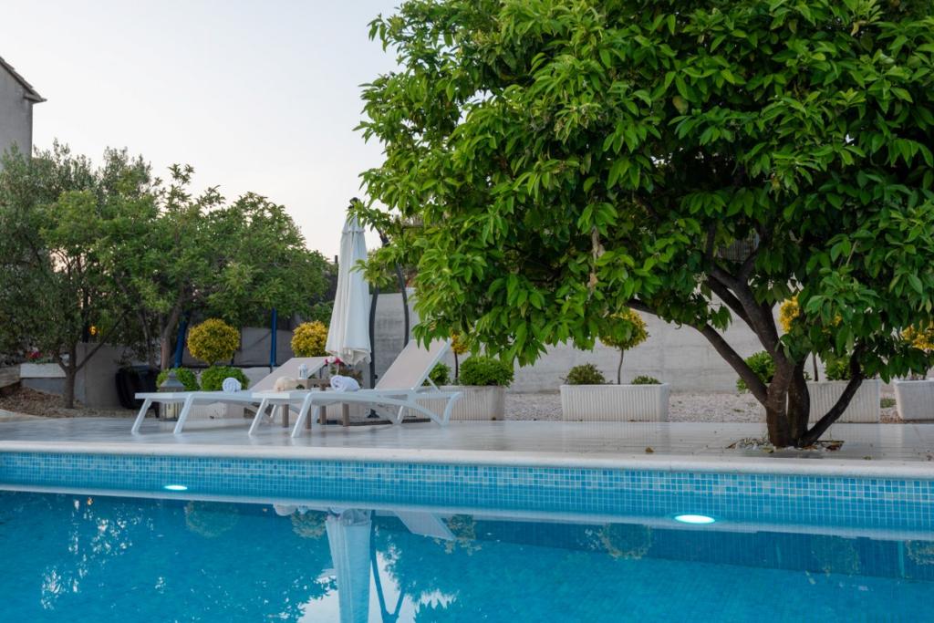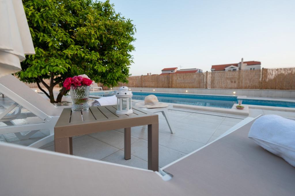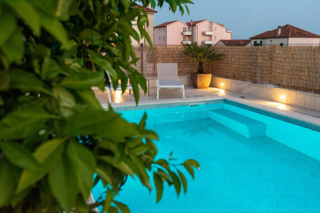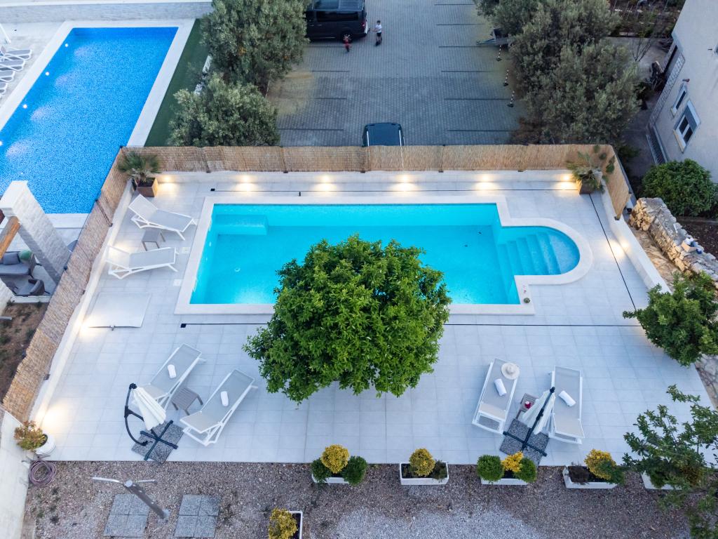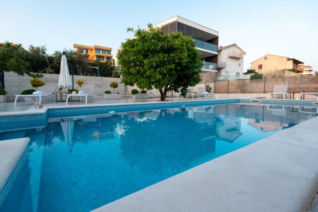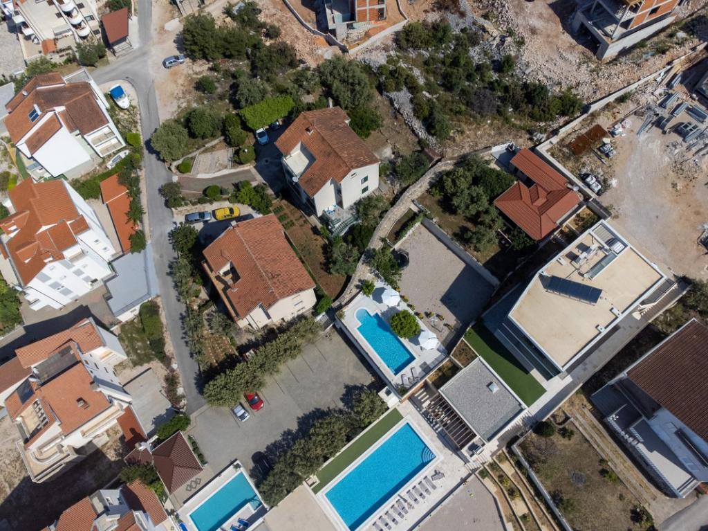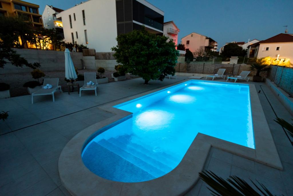 Sun gardens je okouzlující dům k pronájmu, který se nachází na předměstí Šibeniku v Podsolarsku, jen 1 km od oblíbeného parku Amadria. Tento dům ukrytý mezi olivovníky má 2 ložnice, koupelnu, velkou zahradu a hřiště pro děti a velkou jídelnu a kuchyň, umístěné v prosklené části, jsou ideální pro večerní posezení. Největším plusem je velký soukromý bazén a prostor na opalování pro chvíle odpočinku.