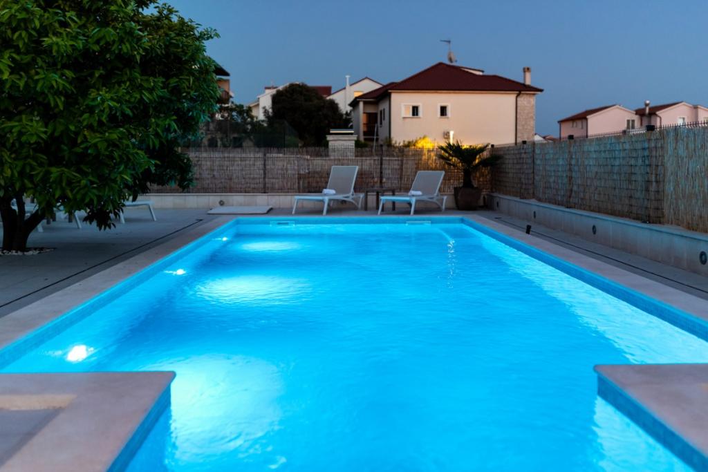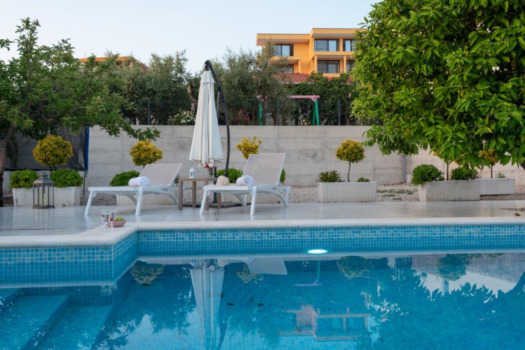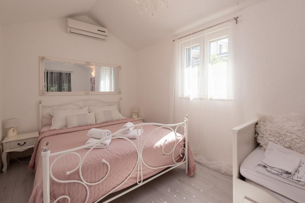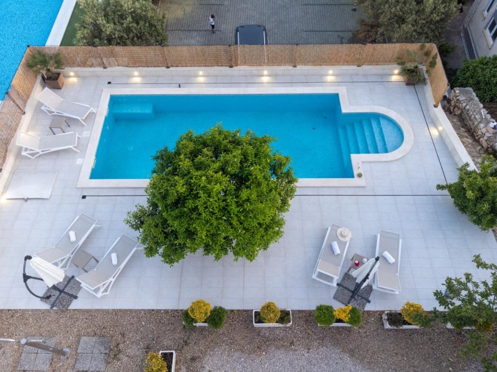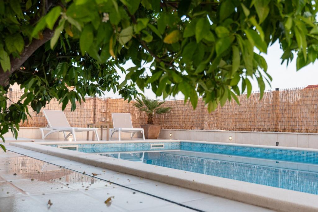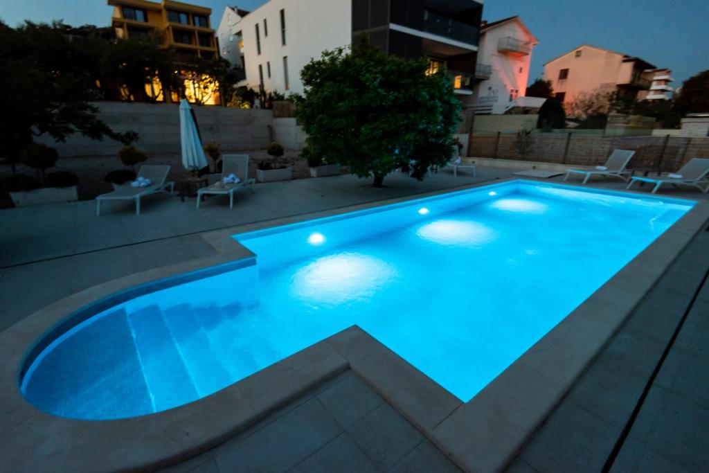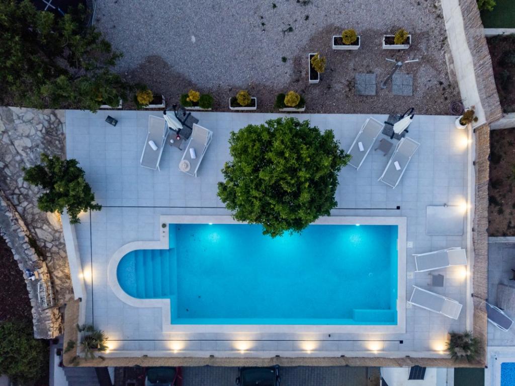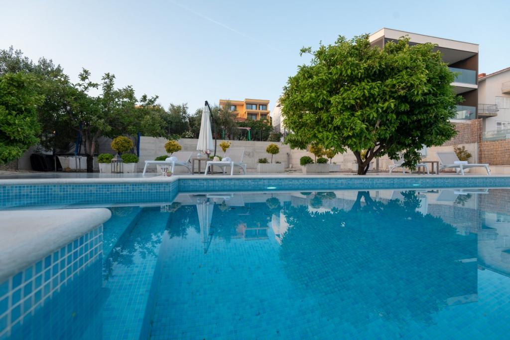 Sun gardens je okouzlující dům k pronájmu, který se nachází na předměstí Šibeniku v Podsolarsku, jen 1 km od oblíbeného parku Amadria. Tento dům ukrytý mezi olivovníky má 2 ložnice, koupelnu, velkou zahradu a hřiště pro děti a velkou jídelnu a kuchyň, umístěné v prosklené části, jsou ideální pro večerní posezení. Největším plusem je velký soukromý bazén a prostor na opalování pro chvíle odpočinku.
