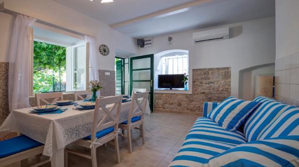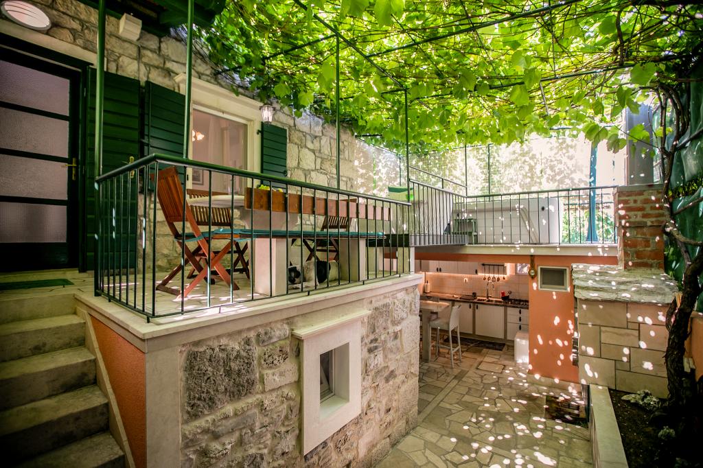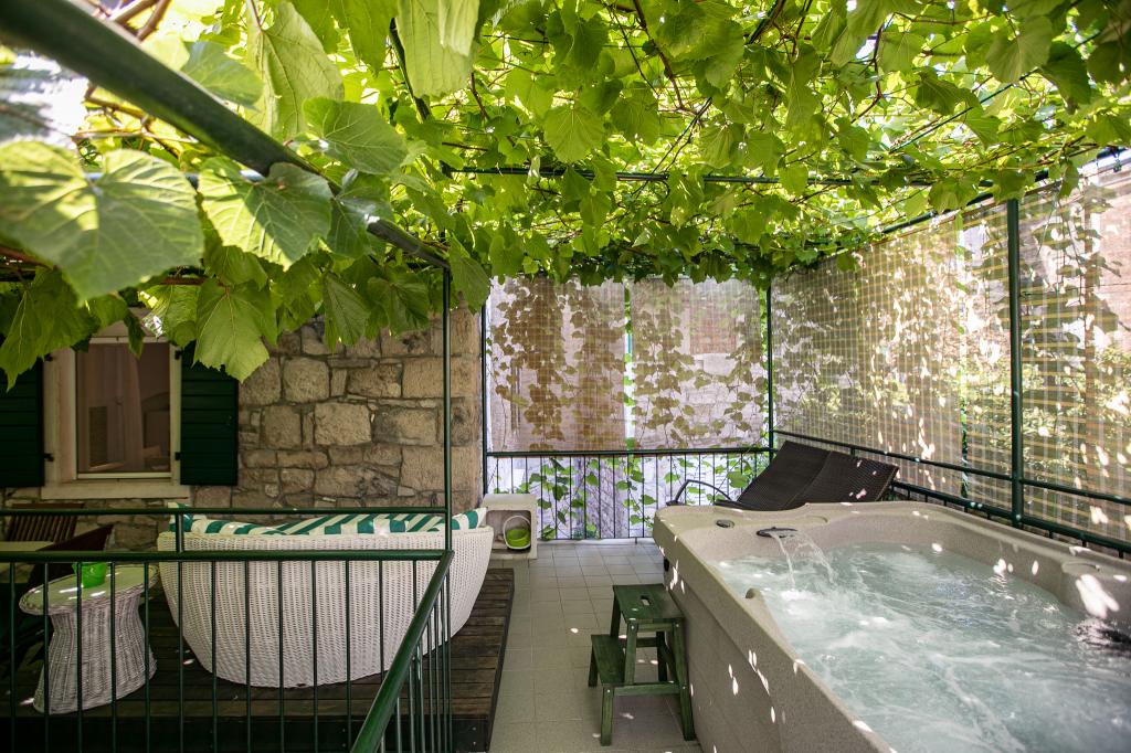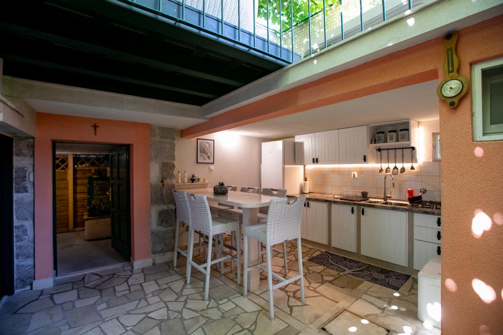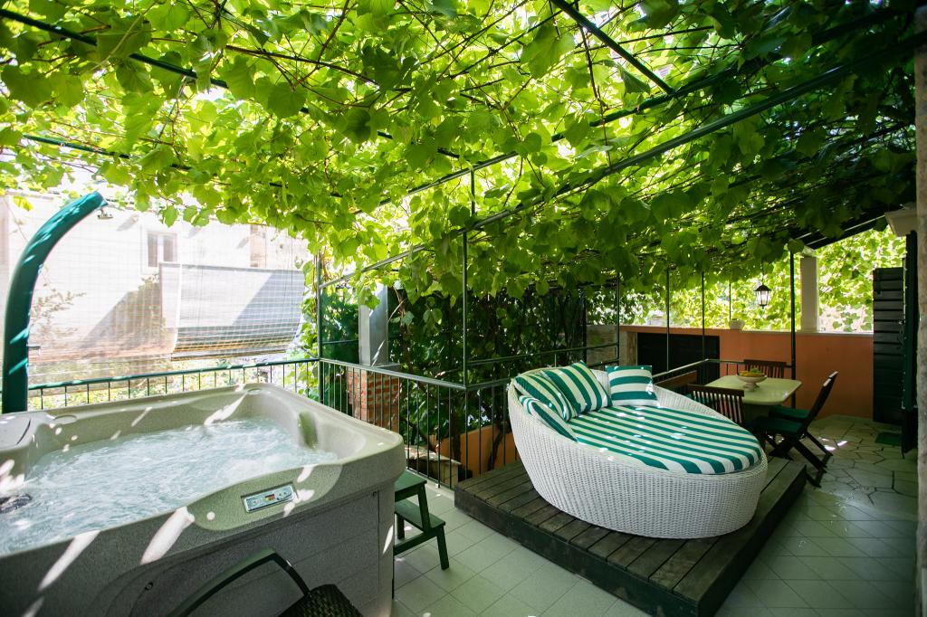 Tradiční kamenná vila Nono Ivo 4 byla kompletně zrekonstruována. NEW! OUTDOOR HOT TUB pro 4 osoby. Je k pronájmu jako celá vila, jste ve vile sami, nejsou žádní další hosté a žádný majitel. Nově zařízený ve středomořském stylu se vším, co potřebujete pro moderní bydlení. Od centra města, pláže a veškerého potřebného vybavení 30 m. Ve vile se může ubytovat 6 dospělých a 2 děti. Dům má 3 ložnice, jednu se 2 samostatnými lůžky, druhou s manželskou postelí velikosti King a postelí pro dítě do 12 let a třetí s manželskou postelí a postelí pro dítě do 18 let, 2 koupelny a obývací pokoj s kuchyň a jídelna, všechny klimatizované. Vnější část se skládá z terasy s kamenným stolem pro 8 osob, další terasy s lehátky a sluneční sprchou, nádvoří s kamenným grilem a letní přílohy obsahující 1 pokoj, vybavenou kuchyň a koupelnu. Obklopen zahradami a intimitou. Parkování zdarma a 40 metrů daleko. V blízkosti domu jsou 4 pláže.