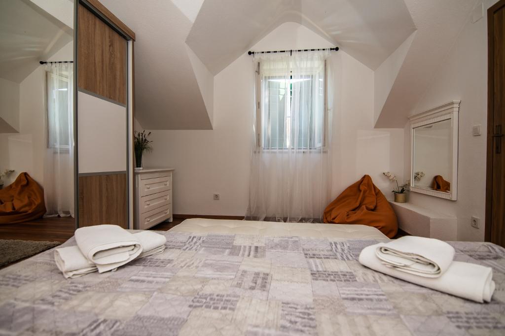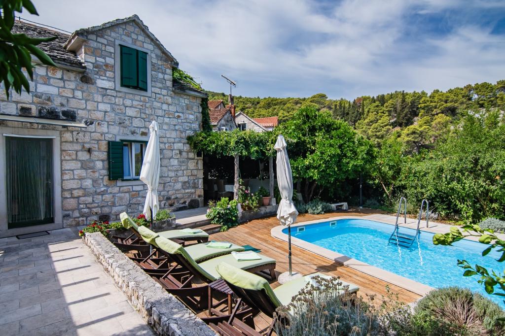 Dům má 90 m2, bazén 28 m2, zahrada 200 m2, budova obsahuje dvě ložnice, kuchyň s obývacím pokojem, koupelnu, WC na patře vedle pokojů, venkovní solární sprchu u bazénu, venkovní gril, dvě jízdní kola, která lze použít zdarma, výhled na moře. Restaurace 100 metrů, pláž 2 km.