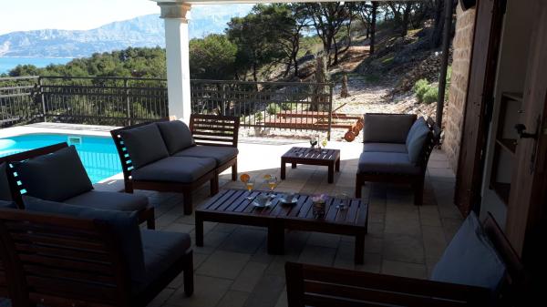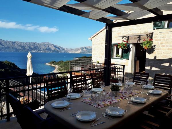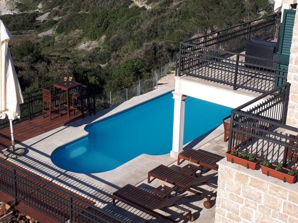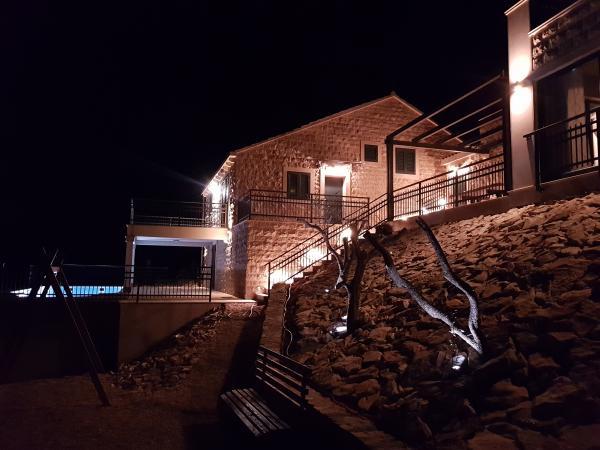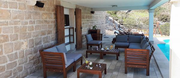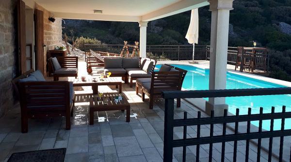 Tato kamenná budova, která se nachází na pozemku o rozloze 10.000 m2, kombinuje nedotčenou přírodu, tradiční vzhled, moderní výzdobu a dokonalý způsob útěku z davu města. V domě jsou 4 ložnice a 4 koupelny, 2 kuchyně a obývací pokoj nabízí nádherný výhled na samotné pobřeží a kouzelné moře. Vzhled, který bojuje se třemi velkými terasami, je neuvěřitelný a vedle lehátka, na kterých můžete spát, jsou vybaveny večerními stolky pod hvězdami a kávou v pozdním dopoledním ranním rohu a rohové posezení pro sklenku vína nebo šťávy po osvěžení v soukromém bazénu o velikosti 9,8x3. 5 m. Každá z prostorných teras a samotného bazénu má prostor pro děti s pískovištěm a houpačkami. 8x15m hřiště pro plážový volejbal, badminton a fotbal nabízí dovolenou se sportovní zábavy a zábavy. Cyklistika nabízí příležitosti prozkoumat přírodní prostředí. Grilování dominující centrální terase přináší rodinný oběd v zábavné party.