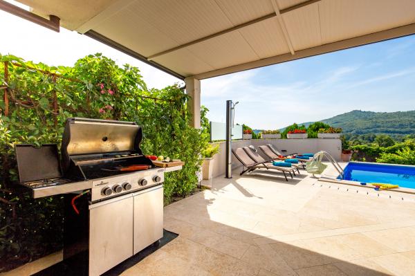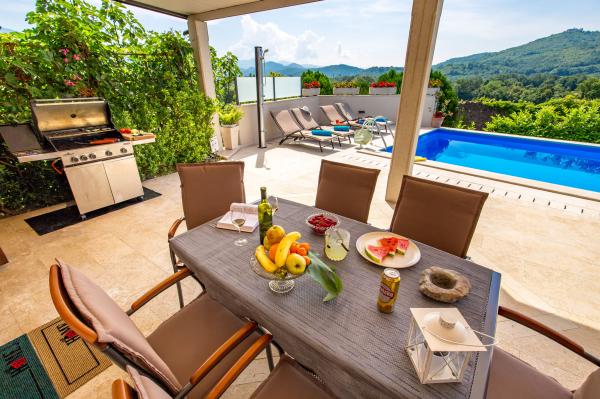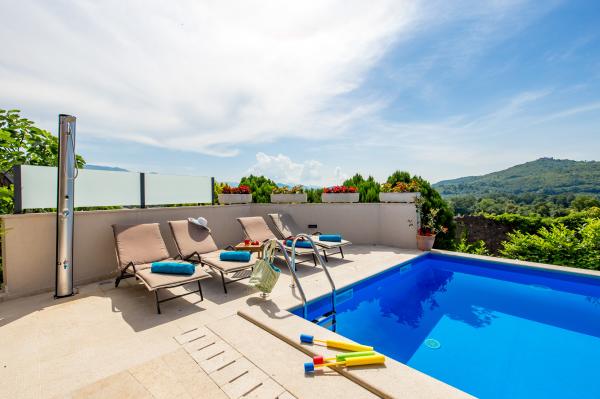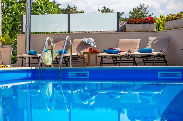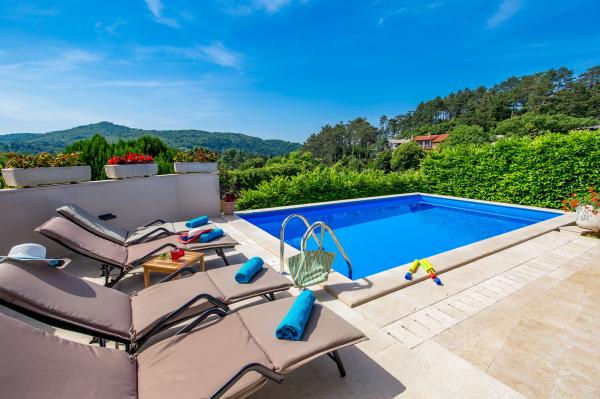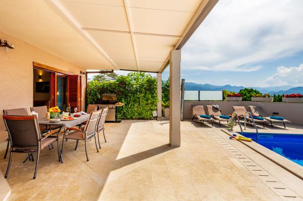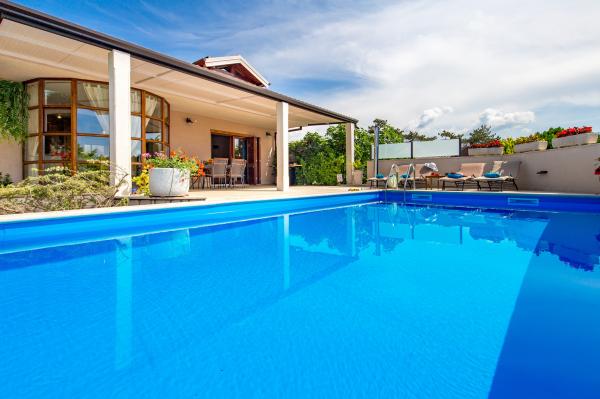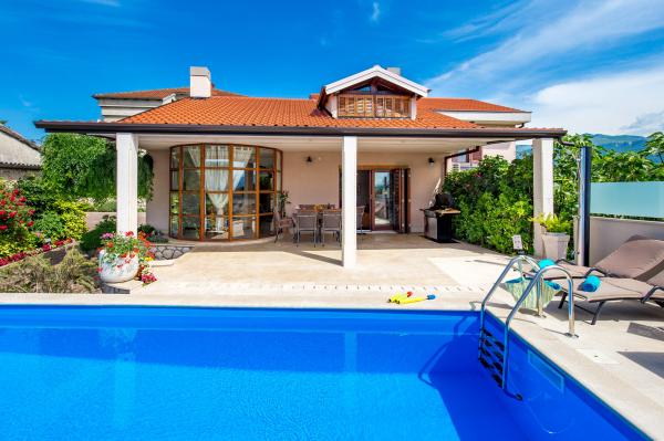 Villa Marijana je krásný přízemní rekreační dům se nachází v zázemí Rijeky, na klidném místě v blízkosti krásných turistických měst Opatija a Crikvenica. Villa Marijana je dům s prostorným a teplým bazénem o rozloze 30m2, pohodlnou kapacitou pro 7 osob a celkovou obytnou plochou 220 m2. V přízemí je koupelna, kuchyň, jídelna, obývací pokoj s velkou krytou terasou (s grilem), krásným výhledem na bazén a krásnou květinovou zahradou a okolní přírodou. Celá plocha na terase je velmi intimní a pohodlná. V obytném domě jsou tři ložnice (s balkonem), koupelna a jedna další místnost. Dům má také velkou garáž a kryté venkovní parkovací místo. V romantických letních večerech si můžete vychutnat bohatou gastronomickou nabídku, různé památky, bohaté akce a koncerty. Naši hosté se rádi vrátí a vrátí se, protože jsou přesvědčeni, že jejich dovolená bude utrácena v pohodlí, kráse přírody a klidu.
