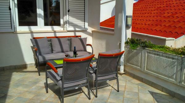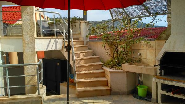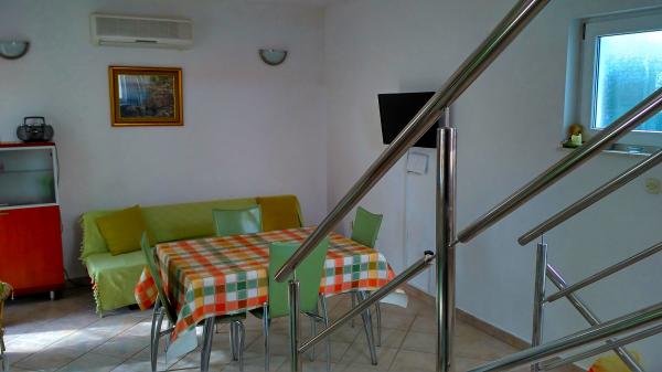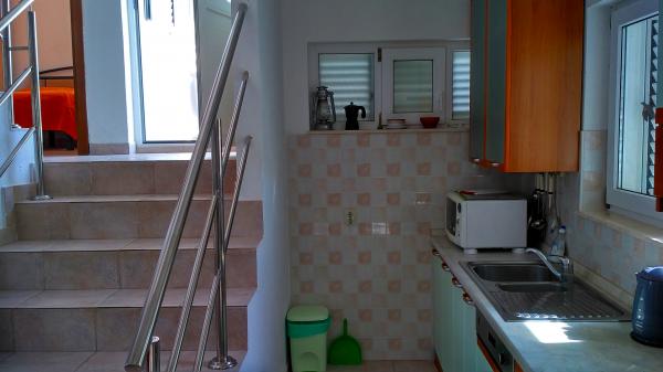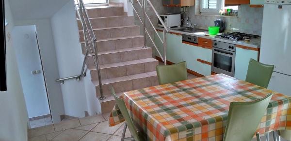 Naše rekreační dům má 90 m2 obytné plochy a 30 m2 garáž pro dvě až tři auta. Je ideální domácí pro 4-6 osob. Dům má dvě nadzemní podlaží. V přízemí se nachází kuchyň a jídelna a malá koupelna. Nahoru po schodech můžete najít další koupelna a obývací pokoj s rozkládací pohovkou, nebo pokud potřebujete více místa pro spaní. Odtud se můžete snadno přistupovat dvě terasy, kde si můžete odpočinout po koupání v průzračném moři je jen 10-15 m od sebe. V prvním patře jsou dvě ložnice, jedna s manželskou postelí a jedna s dvojitým + 1 samostatným lůžkem. Dům je druhý dům od moře, takže si můžete být na pláži nyní, a po několika sekundách se vrátí do domu na jídlo, nebo využít venkovní sprchu aktualizovat. Na spodní části terasou, grilem a jíst ven a užít si letní atmosféru. Tento dům je k dispozici po celý rok.