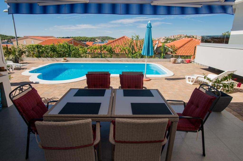 V domě se může ubytovat 10 hostů. Lůžka se nacházejí v 5 ložnicích, na celkovém povrchu 200 m2. Hosté si mohou vychutnat výhled na moře z vlastní terasy. Pro úplné potěšení a relaxaci je zde také soukromý gril pouze pro hosty tohoto ubytování. Během svého pobytu mohou hosté relaxovat v soukromém bazénu. Pozice: ZATOGLAV - ROGOZNICA (3 km) ŠIBENIK - Šibenik - Kninská župa přízemí → dvoupatrová Plocha: 168 m2 39 m2 (Terasa 1, Terasa 2) Počet lůžek: 10 Kategorizace: 4 Doprava: Letiště - Vila - Letiště Doplňkové služby a náklady - Klimatizace • Závěrečný úklid • WiFi • Žehlička • Žehlící prkno • Fén • Bazén • Parkoviště • Pobytová taxa: Zahrnuto v ceně Kauce 500, 00 € / jednorázově, - je hrazena ubytovateli v hotovosti v den příjezdu a plná částka je vrácena hostovi v den odjezdu, pokud během pobytu nezpůsobila škodu
