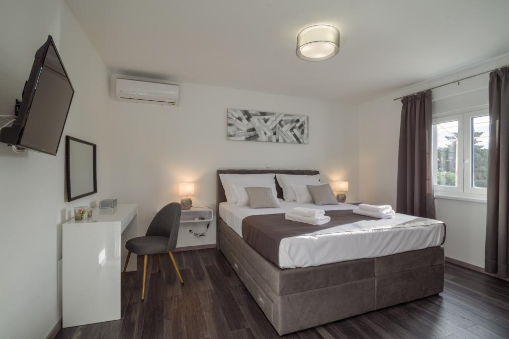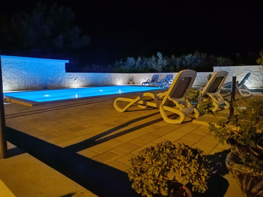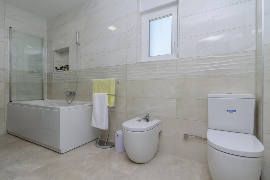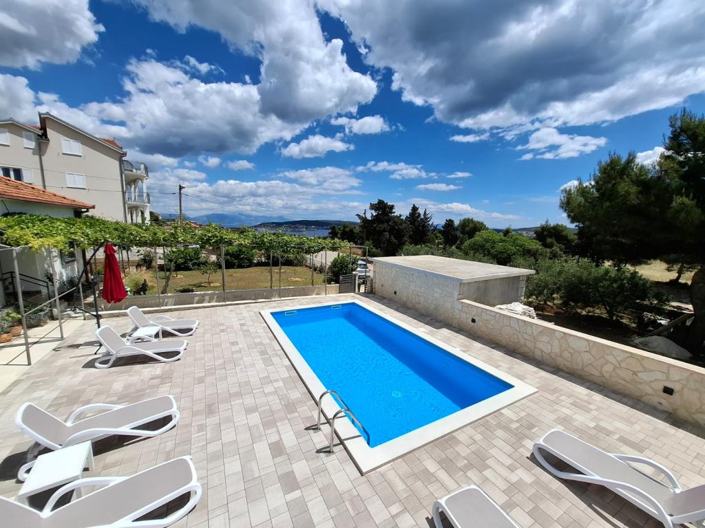 Tento nově zrekonstruovaný rodinný dům vhodný pro 7 osob se nachází nedaleko Trogiru, v okrese Seget Donji, v blízkosti hotelu Medena. Dům se nachází na pozemku o rozloze 700 m2 a má 150 m2 obytné plochy. Venkovní kuchyně se stolem pro 8 osob, venkovní toaleta, velký gril a soukromý bazén vám poskytnou vše, co potřebujete pro příjemnou a relaxační dovolenou. Celý prostor je moderně zařízený, klimatizovaný a má Wi-Fi. Vnitřní kuchyň je plně zařízená a obsahuje veškeré domácí spotřebiče. Dům má 3 moderně zařízené, velké ložnice. Každá ložnice má satelitní TV a klimatizaci. Větší koupelna je vybavena vanou a pračkou. Menší koupelna má sprchový kout. V domě je také malá posilovna. Před domem je parkování pro 3 auta. Velká veranda vám poskytne klid a relaxaci a venkovní kuchyně je místem, kde si můžete užít posezení s rodinou a přáteli. Celý dům a zahrada s bazénem jsou k dispozici hostům.