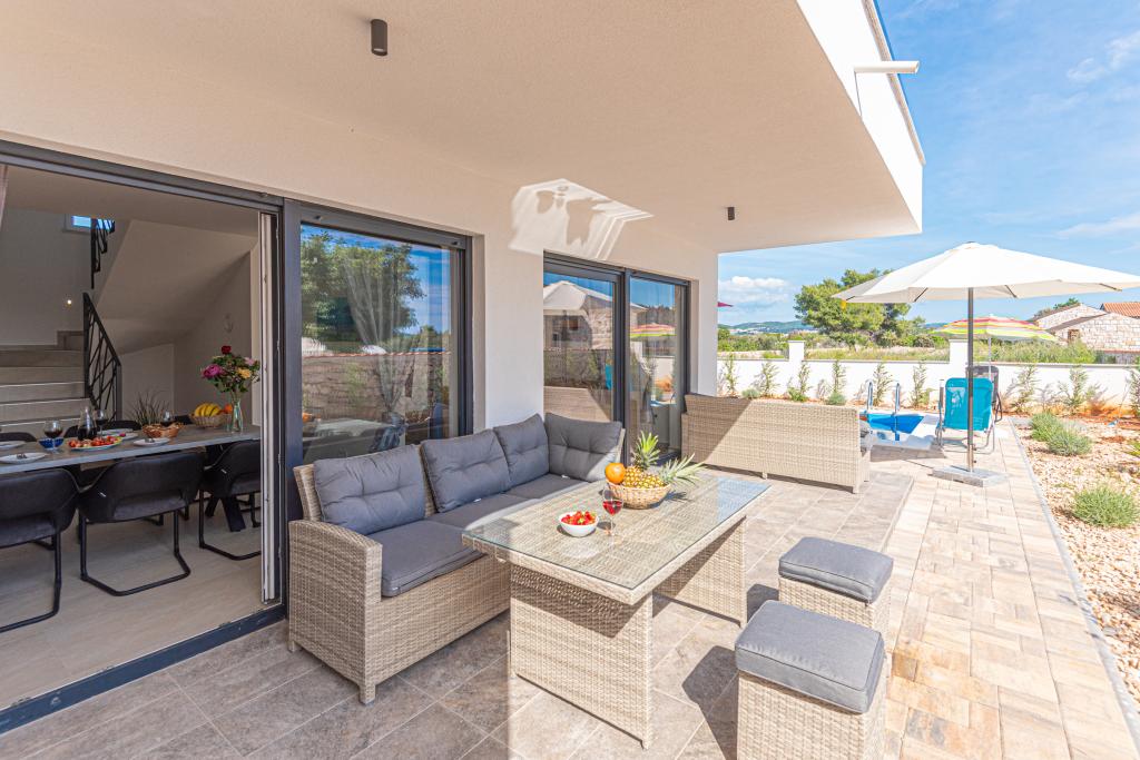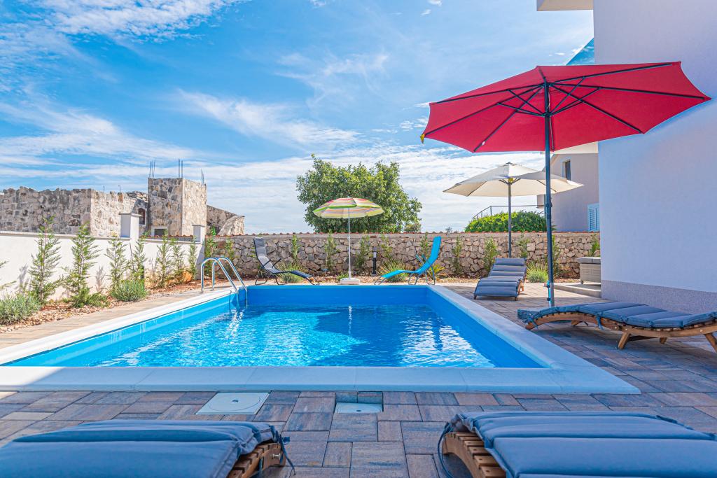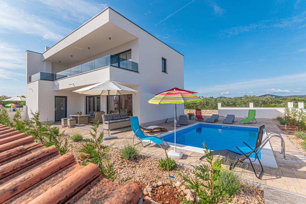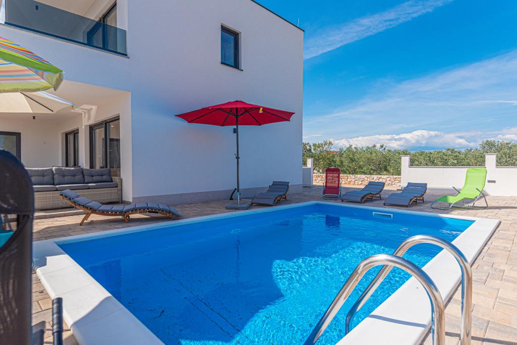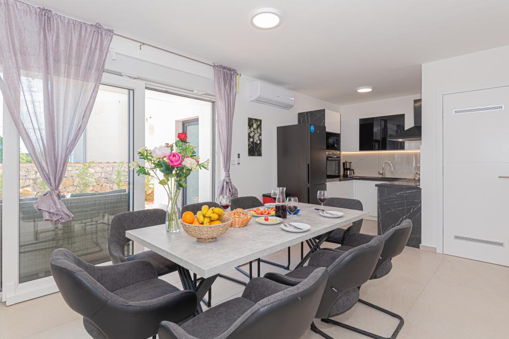 Vila Adriatic Sunrise – Klidná dovolená poblíž Šibeniku Užijte si relaxaci ve Ville Adriatic Sunrise, krásném rekreačním domě s vyhřívaným soukromým bazénem a klimatizovanými pokoji, ideálním místem pro únik od každodenního života. Tato prostorná vila se nachází v blízkosti historického města Šibeniku a nabízí krásný výhled z velké terasy, ideální pro užívání si slunce a klidného prostředí. Vila se skládá ze čtyř elegantně zařízených ložnic, pohodlného obývacího pokoje a tří plochých televizorů pro vaši zábavu a relaxaci. Kuchyň je plně vybavena myčkou nádobí a troubou, což vám umožní si s radostí připravovat jídlo. Tři moderní koupelny se sprchami v přízemí poskytují luxus a pohodlí po celou dobu vašeho pobytu. Venkovní prostor je ideální pro užívání si čerstvého vzduchu, ať už relaxujete u jídla ve venkovní jídelně nebo si užíváte osvěžujícího koupání v bazénu. Tato vila nabízí bezplatné soukromé parkoviště, bezplatné Wi-Fi a čisté ručníky a ložní prádlo pro naprosté pohodlí.