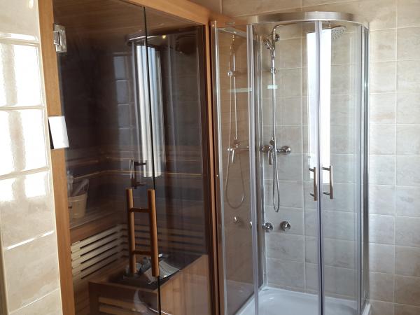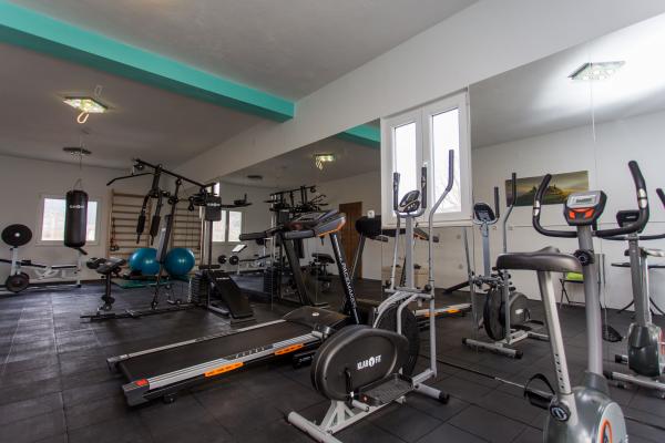 Přečtěte si vícevybavení Západně od Villa 12 x 5m vyhřívaný bazén vybavený podvodní masáží. K dispozici je také finská sauna a další koupelna se sprchou, levandulem a toaletou, která je ideální pro odpolední čaj, nebo si odpočinout a vychutnat si klima se světlem větrem, 450 metrů nad mořem. Plně velký tenisový kurt s umělou trávou a stolním tenisem je k dispozici také pro plně vybavenou posilovnu s LCD TV pro ty, kteří chtějí mít aktivní dovolenou. K dispozici je gril s malou kuchyní. K rekreaci a poznávání přírody patří 3 kola.