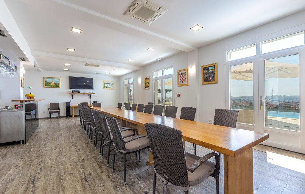 Tato moderní, luxusní vila se nachází v malém městečku Mravince nedaleko Splitu. V přízemí se nachází obývací část se vstupem na terasu, kde najdete bazén s nezapomenutelným panoramatickým výhledem na město Split, moře a ostrovy. Dům je ideální pro velké skupiny nebo více rodin. Dům poskytuje izolaci od rušného každodenního života, přesto v dosahu okolních atraktivních turistických cílů. V okolí Mravinacu se nacházejí města, která si ve svém kulturním dědictví zachovala dlouhou historii Středomoří a jsou pod ochranou UNESCO. Jedná se o města Split a Solin, která jsou vzdálená 5 až 15 minut jízdy autem, a města Trogir a Omiš, která jsou vzdálená 30 minut jízdy autem.