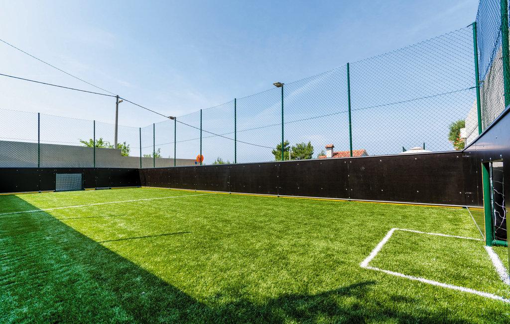 Nemovitost zahrnuje velký dům s 9 ložnicemi, které jsou klimatizované a mají Wi-Fi připojení, 15 koupelen, 4 kuchyně, z toho jedna profesionální s velkou jídelnou pro velký počet osob. V suterénu domu je sauna, jacuzzi, posilovna, stolní tenis, šipky, stolní fotbal a kulečník, kde můžete relaxovat, trénovat a bavit se. Před domem je bazén 70 m2, vedle kterého je malý party domek s grilem, tenisový kurt a fotbalové hřiště s umělou trávou.