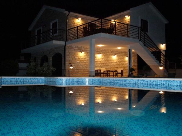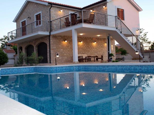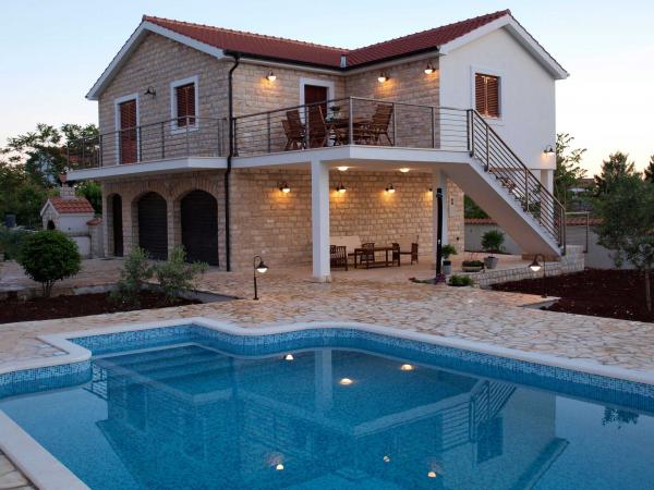 Bazén Villa **** je nově postavený rekreační dům, který se nachází v malé vesnici typické středomořské architektury horní části obce na ostrově Šolta. Vila je vybavena na vysoké úrovni, a je ideálním místem pro dovolenou po celý rok, je vhodný pro rodiny s dětmi, cyklisty, turisty a všechny ty, kteří chtějí klidnou dovolenou v přírodním a relaxační atmosféru. Je obklopen 1400 m2 pozemku, na kterém se nachází i velký bazén a tradiční grilování a kolem rostou olivovníky a středomořskou vegetací. Vila se skládá ze 3 ložnice, 2 koupelny a 1 WC, prostorný obývací pokoj a kuchyň se všemi potřebnými spotřebiči (sporák, trouba, myčka, mikrovlnná trouba, mixér, atd.), Na horním a spodním patře jsou velké terasa se stolem a židlemi pro stolování a lehátky pro relaxaci. K dispozici je garáž a kryté parkovací stání.