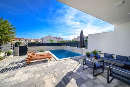 Villa Mira se nachází v Srima v Šibenicko-kninské župě. Hosté mají přístup na terasu, soukromý bazén a bezplatné Wi-Fi. Tato vila má 4 ložnice, obývací pokoj a plně vybavenou kuchyň. Nabízí také klimatizaci, TV a 3 koupelny s myčkou a pračkou. K dispozici je bezplatné parkování, gril a společenská místnost. Vodice jsou vzdálené 3 km. od vily a Šibeniku 12 km. Letiště v Zadaru je vzdálené 66 km, NP Krka s krásným Skradinski Bukem 15 km.