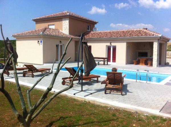 Moderní a komfortní rekreační dům se nachází v zázemí Sukosan, jen 4 km od nejbližší pláže, restaurací a turistických akcí. Skládá se ze 4 ložnic, 4 koupelny, WC, kuchyň propojená s obývacím pokojem. Z obývacího pokoje ven na terasu s krytou grilem, a bazén 32 m2