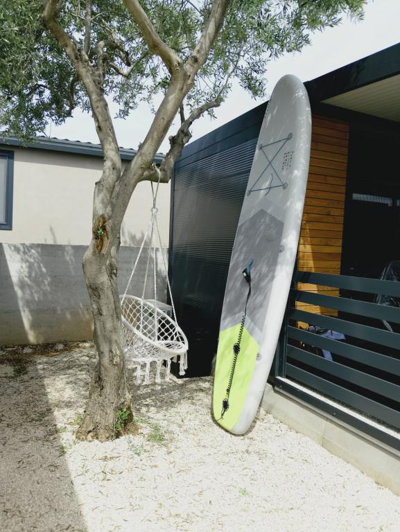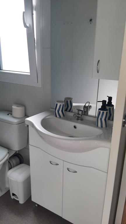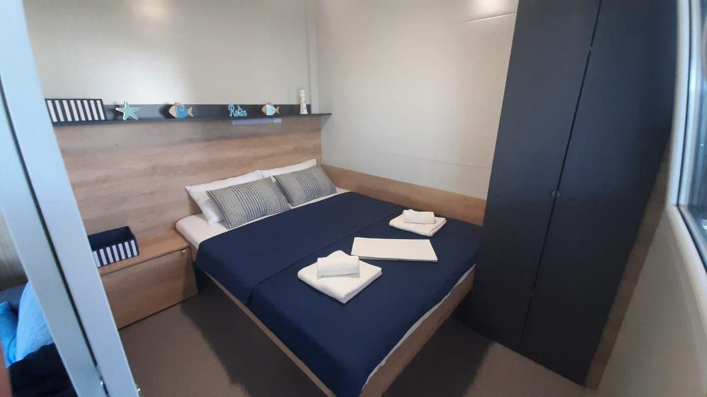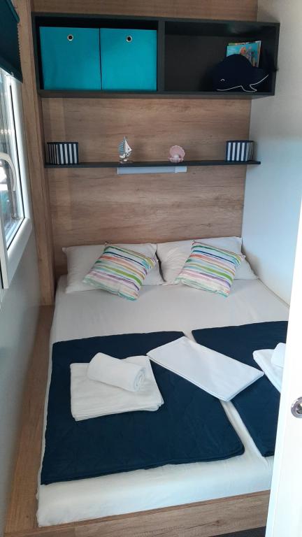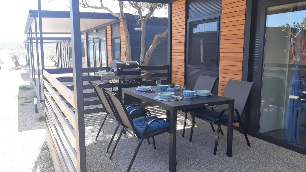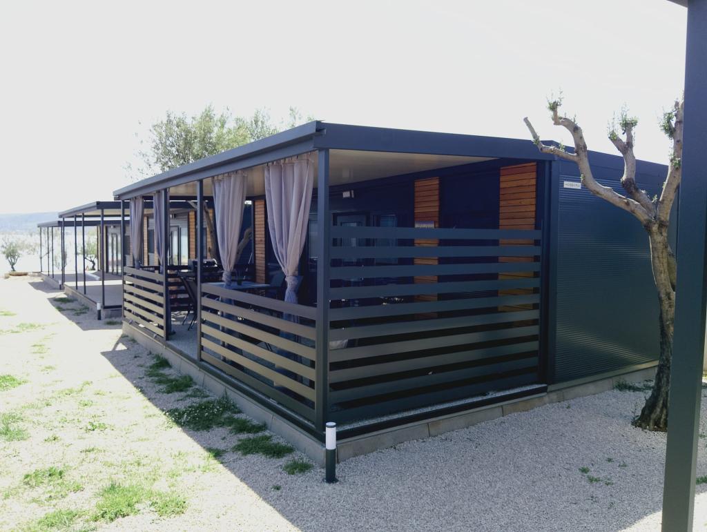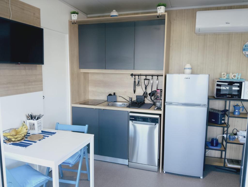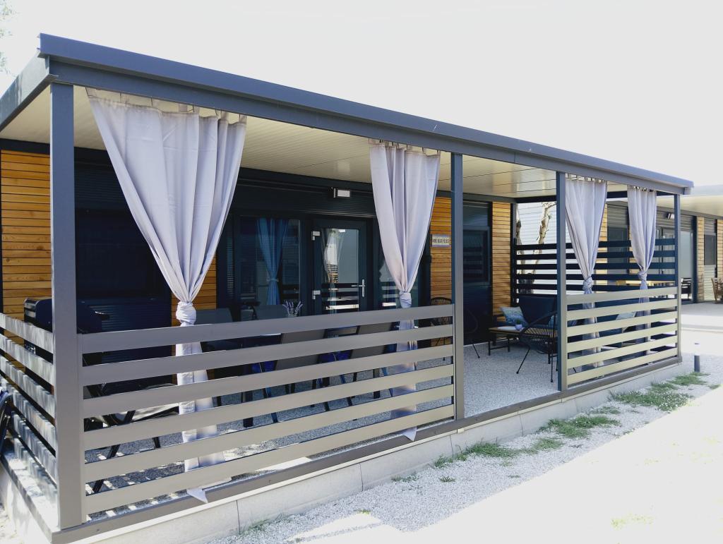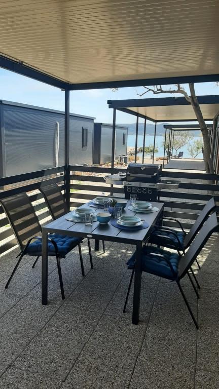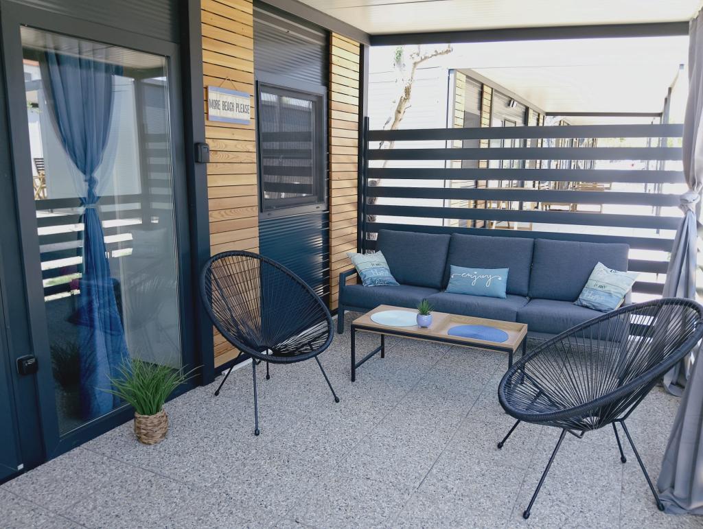 Nový mobilní dům s výhledem na moře v nově zrekonstruovaném kempu Tamaris ve Sv. Petr na moři. Plně vybavený mobilní dům jen 10 metrů od moře. Obsah mobilního domu: 2 ložnice (manželské postele 140x200 a 160x200, ložní prádlo), koupelna (sprcha, WC, umyvadlo, fén, ručníky), kuchyně (myčka, varná konvice, mikrovlnná trouba, toustovač, lednice, nádobí) na vaření a stravování), obývací pokoj (rozkládací pohovka, Smart TV-IPTV, wi-fi zdarma, klimatizace), krytá terasa (stůl pro 6 osob, pohovka a židle, plynový gril s varným hořákem, sušák na prádlo).