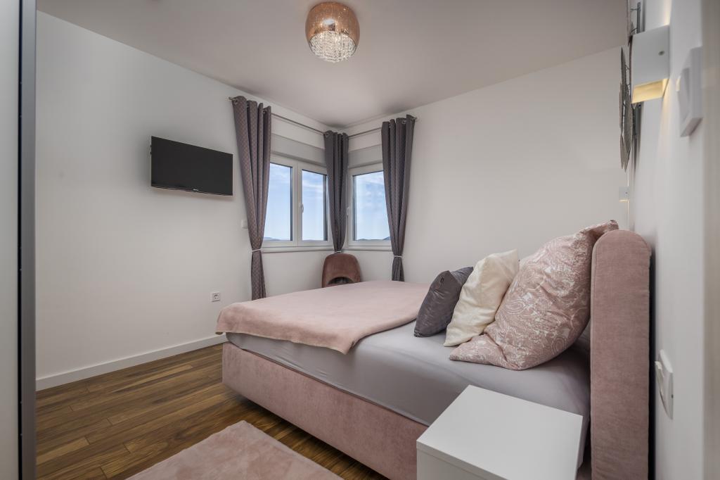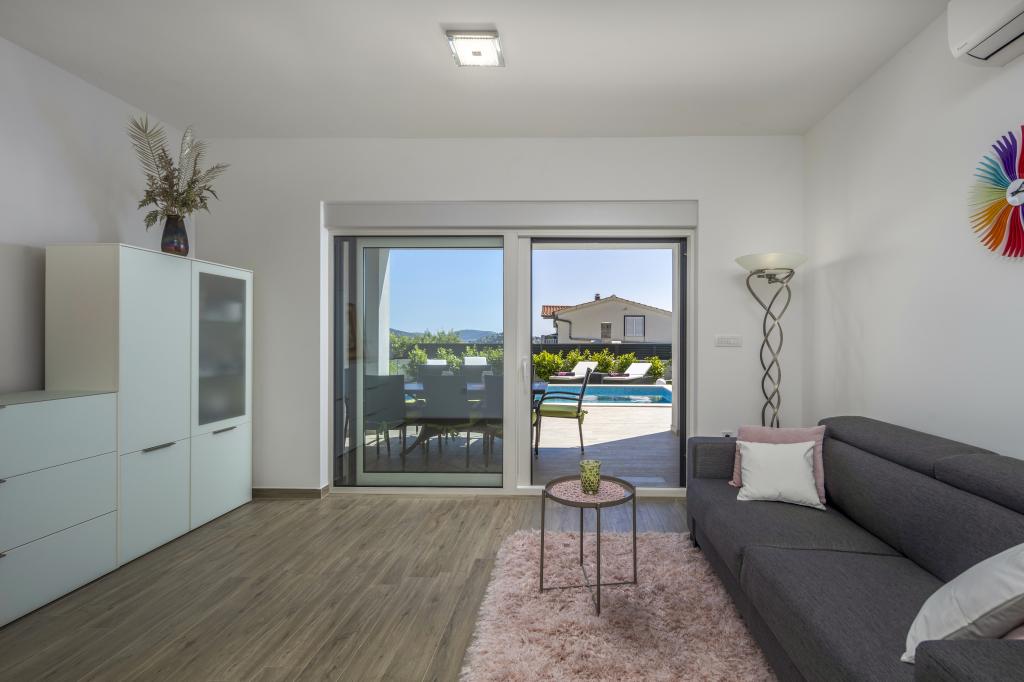 Moderně zařízená Villa Colin, která se nachází v krásné malé rybářské vesničce Tribunj, se třemi prostornými ložnicemi a dvěma luxusními koupelnami, poskytuje perfektní útočiště pro rodiny nebo malé skupiny přátel. Vila má navíc dvě další toalety pro větší pohodlí a praktičnost. Dominantou nemovitosti je jistě krásná zahrada s bazénem o výměře 32 m2. Zde mohou hosté relaxovat a užívat si teplé chorvatské sluneční paprsky při koupání v křišťálově čisté vodě. Každý pokoj nabízí také nádherný výhled na moře a ostrovy. Pro ty, kteří chtějí prozkoumat okolí, jsou k dispozici tři parkovací místa, kam pohodlně přijet autem. Kromě toho mají hosté k dispozici tři jízdní kola, aby mohli prozkoumat malebné uličky a stezky v okolí. Ať už si chcete odpočinout na zahradě, zaplavat si v bazénu nebo prozkoumat okolí, tato vila nabízí vše, co potřebujete pro nezapomenutelný pobyt v Chorvatsku.