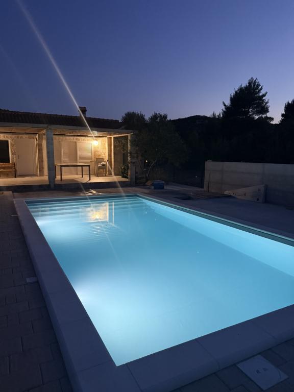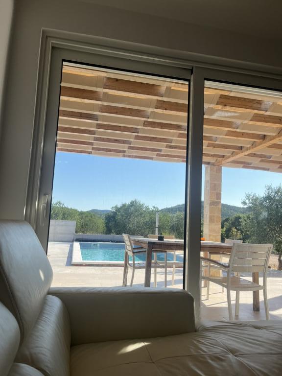 Plně vybavená vila s vyhřívaným bazénem 4x8, solární sprchou, lehátky, křesly, velkou terasou a vestavěným grilem. Přízemní dům se nachází ve vnitrozemí mezi Tisnem a Tribunjem, v obci Ivinj. Má velkou zahradu o rozloze 3500 m2 s 80 olivovníky, fíkovníky, spoustou levandule a dalších středomořských květin,... Vzdálenost od centra města je 3 km, nachází se podél regionální silnice Vodice - Tisno, Murter. Je blízko Národního parku Kornati a vodopádů Krka.