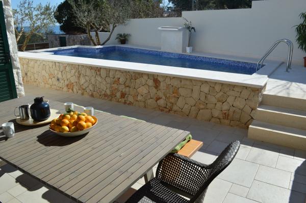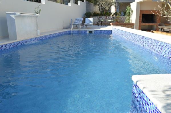 Villa Trogir je ideálním místem pro strávení dovolené s rodinou a přáteli, jen pár kroků od moře. To se nachází v blízkosti starobylého města Trogir v centru Dalmácie, chorvatských nejoblíbenějších turistických destinací. Velmi snadno najít, v blízkosti všech dalmatských kulturních a přírodních zajímavostí. Vila je zdobený bílým kamenem ve starém dalmatském stylu. Kolem domu je krásná zahrada se středomořskou vegetací, olivovníky, vavřín a levandule obklopen malými stěnami skal ostrova. Má krásný výhled na záliv Kaštela, hory Kozjak, Mosor a starobylé město Split s jeho symbolem Marjan. Tato vila se nachází jen pár kroků od krásné písčité pláže. Dům se skládá z: • 5 + kk - 10 osob • 2 další rozkládací pohovka - 4 osoby • 2 kuchyně jeden letní kuchyně • 3 koupelny s WC • 2 velké terasy veranda Doplňkové aktivity: • krásný velký gril • venkovní sprcha • bazén 30 m2 • 3 parkovacích míst