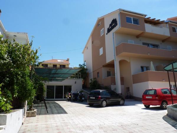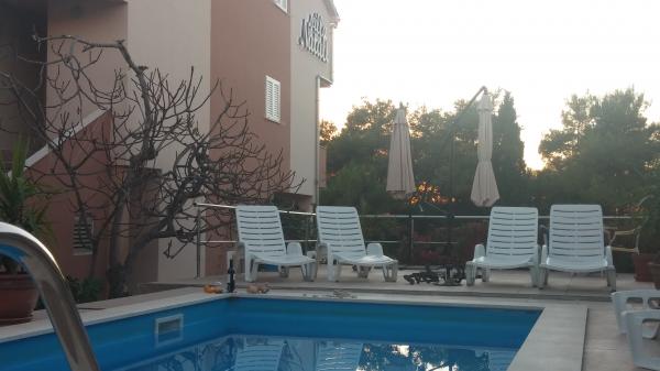 Nová vila (2013), s bazénem 6 x 3 m, sluneční terasou a grilem jen 2 km od Trogiru se nachází v blízkosti oblázkové pláže, která je jeho vzhled, odstín, a dětské hřiště vhodné pro mladé, starší, ale i pro rodiny s dětmi. Moderní apartmány umožní vám příjemný pobyt. Náš hostitel bude každý den v přímém kontaktu s vámi a nabídne vám všechny informace, které lze využít svůj čas jen pro sebe. Mnoho věcí, které si můžete pronajmout, různé výlety si můžete zajít do vás lepší přístup, protože jsme s našimi partnery, udělat vše pro to, aby váš pobyt byl co nejpříjemnější. Pro ty, kteří dávají přednost tradiční součást krajiny, ve kterém přišli a historii a umění města UNESCO, se všemi jeho památkami, a vaše chuťové pohárky vás může překvapit v mnoha restauracích.
