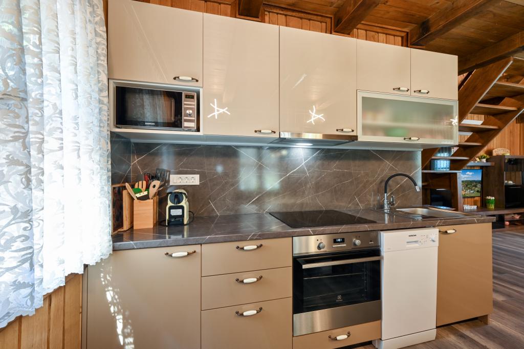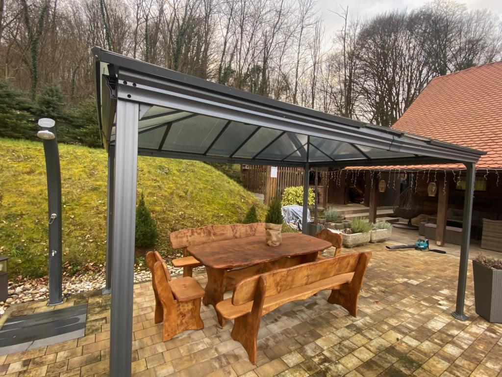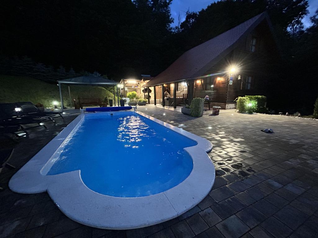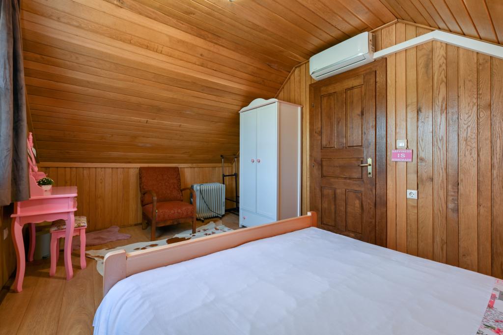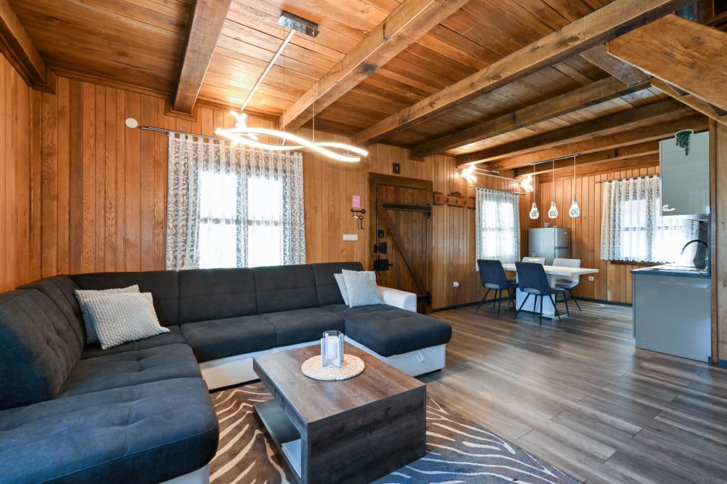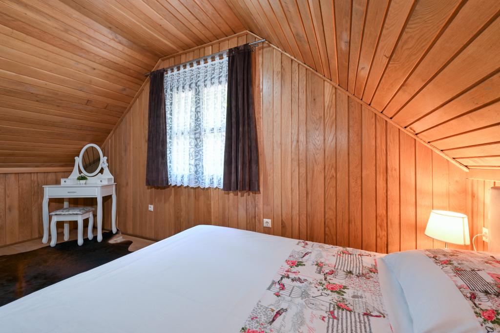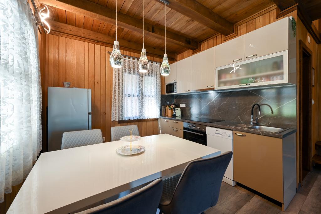 Pokud byste si měli představit dovolenou v pravém slova smyslu, která se nachází na samém vrcholu kopce, pak tou správnou destinací, ale zároveň útočištěm před hektickým životním stylem, by byl prázdninový dům Kontesa. Zde můžete úplně všechno nechat za sebou, věnovat se těm, kteří vás dělají šťastnými, a užívat si výhod, které nabízí čistá příroda a poklidný region Zagorje. Protože jediné, co uslyšíte, bude zpěv ptáků a vítr procházející korunami stromů, přičemž váš pohled bude sahat na okolní kopce, které mění svou barevnou paletu podle ročního období. Budete zastaveni v čase a budete mít příležitost znovu se spojit s rodinou, při ranním posezení na prostorné terase u kávy nebo při čekání na západ slunce a večerním pozorování hvězd. V objetí přírody uvolněte své tělo ve vyhřívaném bazénu nebo vířivce. Spojte se se svými dětmi nebo přáteli a společně grilujte, hrajte stolní hry nebo ty, které jsou k dispozici doma, existuje mnoho možností. A dům, vyrobený z