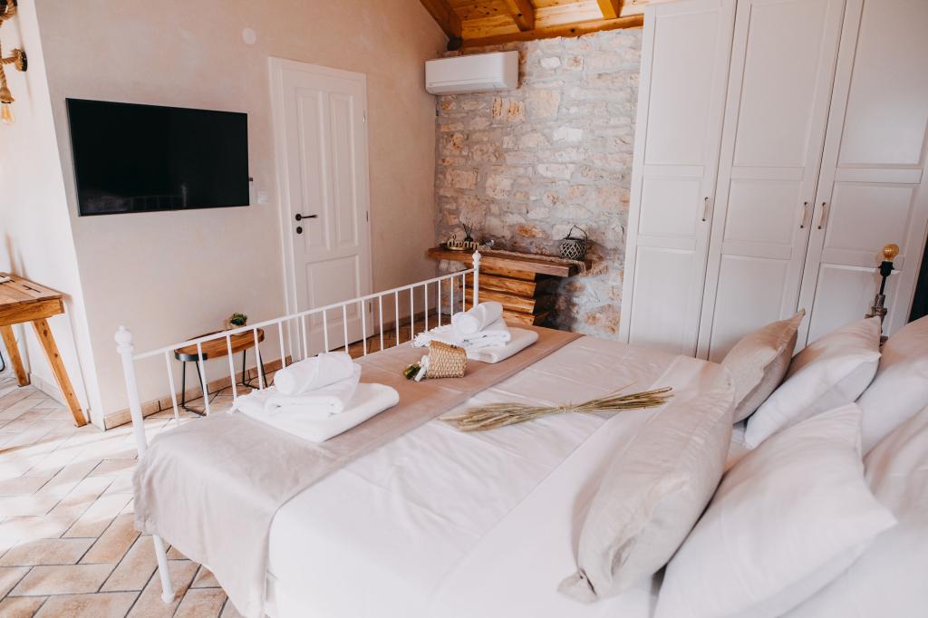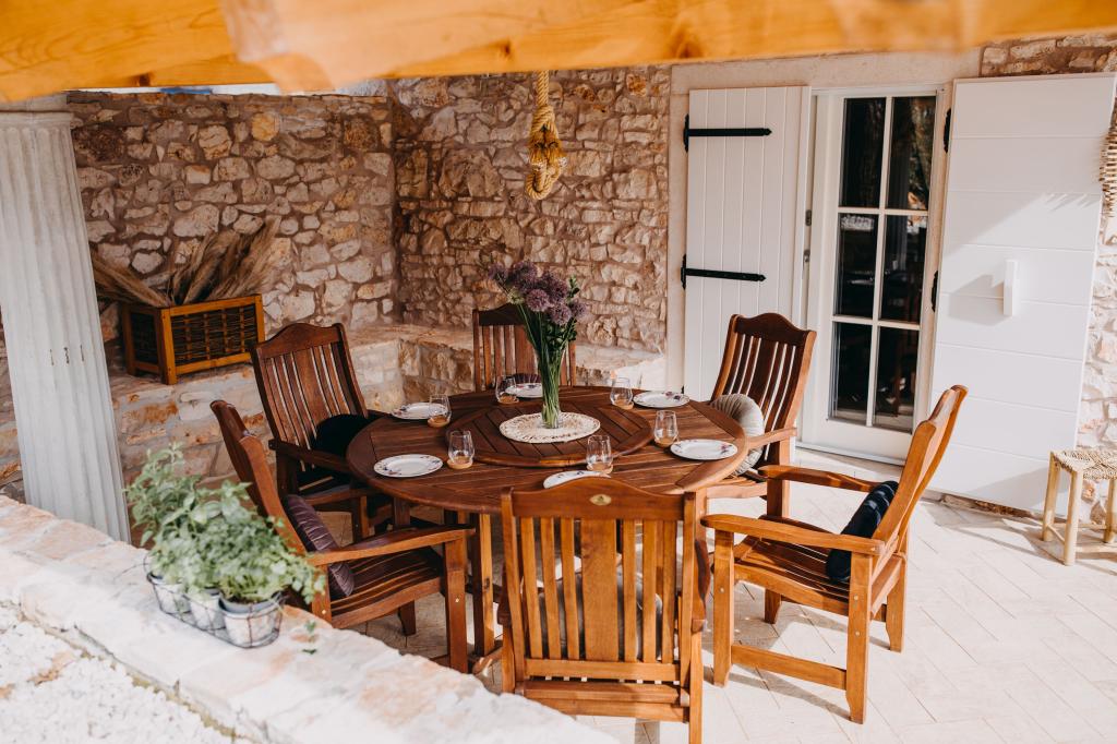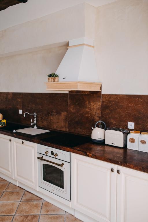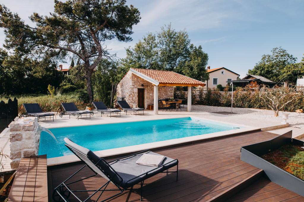 Autentická istrijská kamenná Villa San Lorenzo v klidné istrijské vesnici Zakinji nedaleko Umagu vám nabízí naprosté soukromí a klidné útočiště před každodenním shonem. Strávte kvalitní čas se svou rodinou objevováním a užíváním si istrijského venkova při pobytu ve vile s bazénem, která pojme až 6 osob. Vila se rozkládá na 2 podlažích a nabízí 3 pohodlné ložnice s koupelnami. Přízemí Dopřejte vám pocit domova díky svému obývacímu pokoji, který má jedinečný designový styl. Pokud přemýšlíte, kde připravit lahodná jídla, nebojte se, prostorná kuchyně má vše, co potřebujete, abyste své recepty proměnili ve skutečnost. Projděte dveřmi a ocitnete se v krásné zahradě. Ráno si můžete zaplavat v bazénu nebo si dát kávu na jedné ze tří teras. Během odpoledne můžete relaxovat na lehátkách, zatímco si vaše děti hrají na plně uzavřené zahradě. Možností je mnoho a je jen na vás, jak se rozhodnete. Určitě grilovačku vyzkoušejte, na dovolené je nutností.