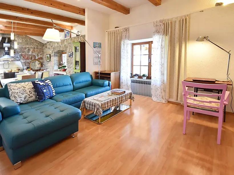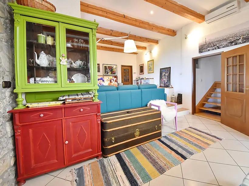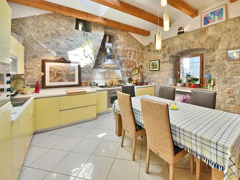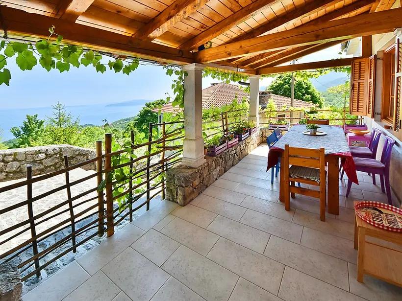 Rustikální rodinný dům ve staré části Veprinac na klidném, suchém, vyvýšeném místě, obklopený zelení, ve slepé uličce s krásným panoramatickým výhledem na Kvarner. 8,5 km k moři a koupališti (beton, štěrk). Vzdálenost od obchodu 550m.