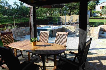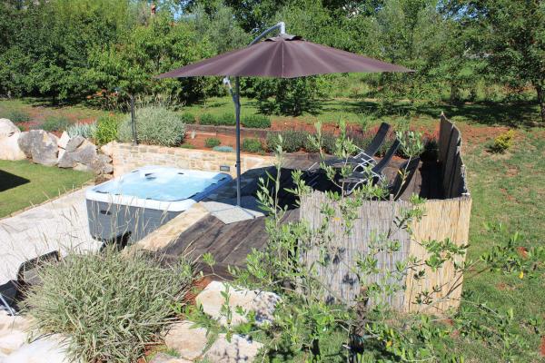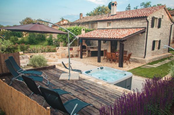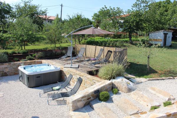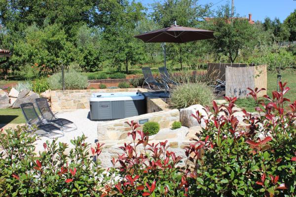 Kompletně zařízená vila s vířivkou nedaleko Poreče, 5 km od Višnjanu. Kromě jacuzzi cena zahrnuje použití 4 kola pro dospělé, ale i pro děti od 4-8 let. Kromě toho je zde také quad a legendární Renault 4. Venku se očekávalo, a krásná velká terasa s venkovní kuchyní a grilem a prostorem na opalování s pohodlnými dřevěnými židlemi. K dispozici je zahrada, kde sezónní zeleninu, jako jsou rajčata, špenát, mrkev, zelí, kapusta, petržel, salát, čekanka, a tam je také bylinky, jako je rozmarýn, šalvěj, levandule, bobkový list ... ale z naší sadu Zdarma můžete použít sezónní ovoce (třešně, švestky, broskve). Obytné místnosti (kuchyň, jídelna a obývací pokoj s krbem) a WC jsou umístěny v přízemí, zatímco (2), ložnice a koupelna na patře. V kuchyni je kromě standardní výbavy navíc vybavena myčkou nádobí, lednicí a mrazákem, topinkovač, mikrovlnná trouba, mixér, shake-ROM, vařič kávy, varnou konvicí.