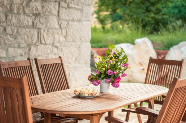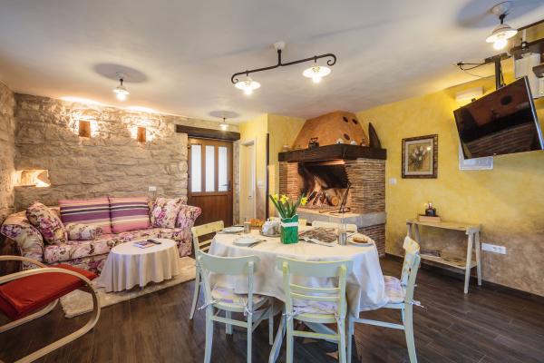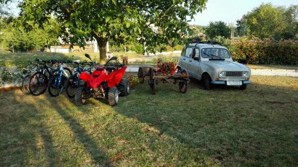 Pobytová taxa je v ceně.Pro jízdu na malebné istrijské cesty země, která jsou čtyřkolky a legendární Renault 4 (populárně nazvaný čtyři). Můžete očekávat, že několik překvapení a v závislosti na ročním období, jako sezónní houby, ovoce a zeleniny z vlastní ekologické produkce, kaštany, chřest, víno ... Venkovní vířivku s romantickou noc světel a příjemným výhledem do sad a zahradu uvolní vaše tělo i mysl. K dispozici je krásný dřevěný zahradní nábytek pod velkou krytou terasu s venkovním kuchyně, kde si můžete připravit chutné jídlo pro stolování na čerstvém vzduchu. Děti si přijdou na trampolínu, když si odpočinout v rustikálním houpačce. V chladných měsících praskající oheň v krbu vytvoří příjemnou romantickou atmosféru.