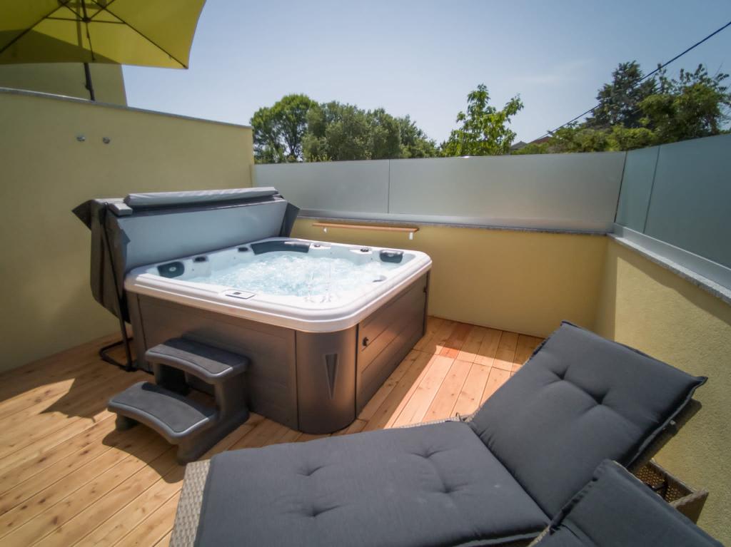 Zdobená vila s bazénem 8•3,5 a jacuzzi, klimatizací v každém pokoji a podlahovým vytápěním. Na dvoře je trampolína pro děti a 4 jízdní kola, za která se neplatí. Vila se nachází 900 m od písečné pláže Svatého Marka.