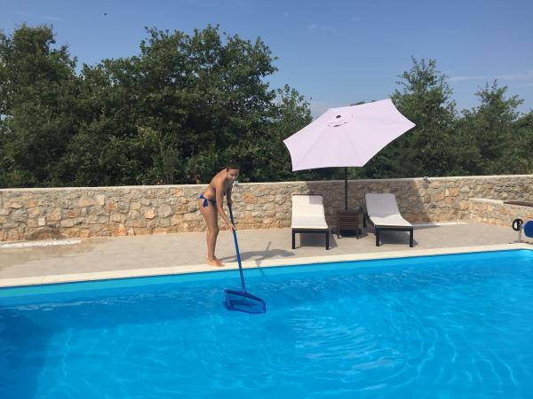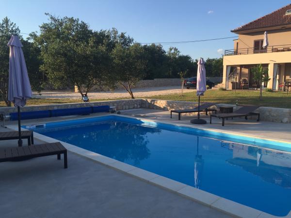 Plně vybavené a moderní rekreační dům v klidném venkovském prostředí ubytovat max. 8 osob. Vhodné pro dvě rodiny nebo skupiny přátel. Od Zadar 13 km nebo deset minut. pohon a 6 km od moře (Sukošan). Dům se skládá ze dvou pater plně vybavená, zahrada 1400 metrů se nachází venkovní bazén rozměry 8x4x1, 5 s terasou, dětské hřiště, zahradní gril, parkování pro 3 auta. Všechny Zelná klidnou a příjemnou dovolenou jsou vítáni