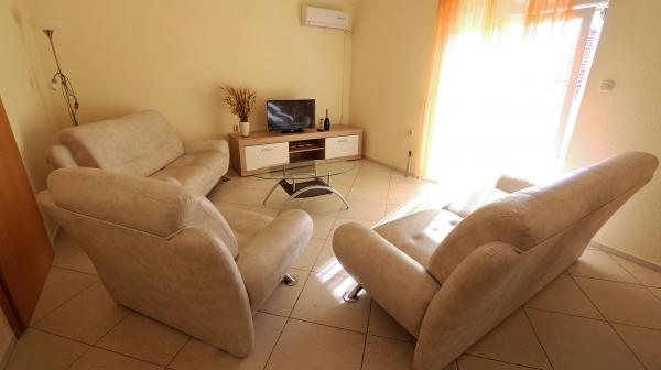 Kompletně vybavená vila skládající se ze dvou úrovní, každá úroveň má samostatný a 120m2. Můžete si pronajmout jedno patro cena za noc je 70eur. , Dům má velkou zahradu, kde je gril, venkovní sprcha, místo k odpočinku, stejně jako parkoviště a garáže. V blízkosti domu se nachází restaurace, kavárna, market, a od moře je jen 2 km. Ve velmi klidné lokalitě ideální pro dovolenou.
