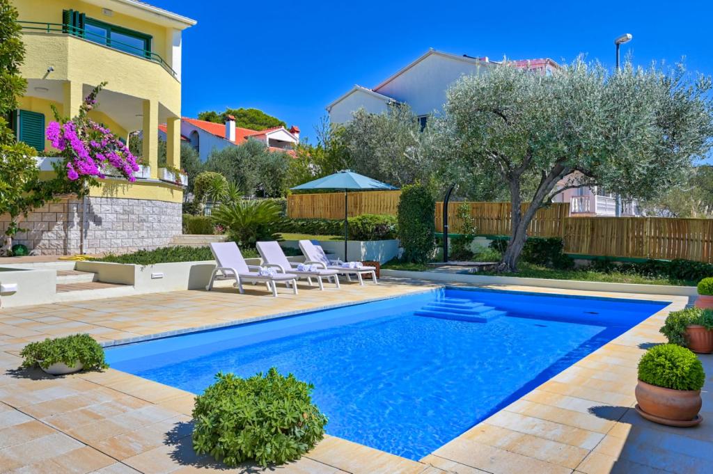 Plně vybavená vila s bazénem, lehátky a slunečníky, v blízkosti pláží Borik, Diklo, Uskok a Puntamika (10 min pěšky) a centra města (5-10 min autem). Z terasy v horní části vily je nádherný výhled na centrum města a zvonici sv. Stošija, moře, ostrovy a naši hosté si mohou užít krásný západ slunce. Dům se skládá z přízemí, prvního patra, terasy nahoře, herny (stolní tenis, stolní fotbal, šipky, běžecký pás, TV), venkovního prostoru pro squash, minifotbal, box, badminton. Všechny pokoje v domě a pokoje mají balkon. Vila nabízí až 5 parkovacích míst zdarma + garáž. V případě dalších dotazů mě neváhejte kontaktovat na uvedených kontaktech nebo e-mailem. Těšíme se na vaše dotazy!